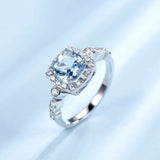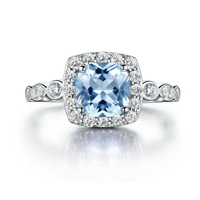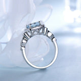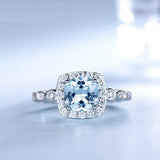 2.5Ct Cushion Cut Blue Topaz Diamond Love Engagement Ring 14K White Gold Finish