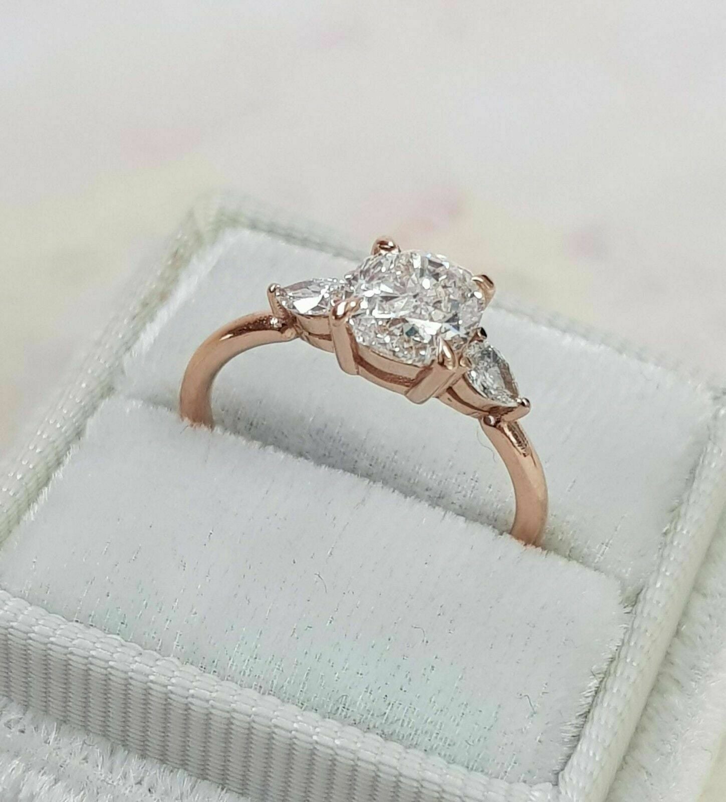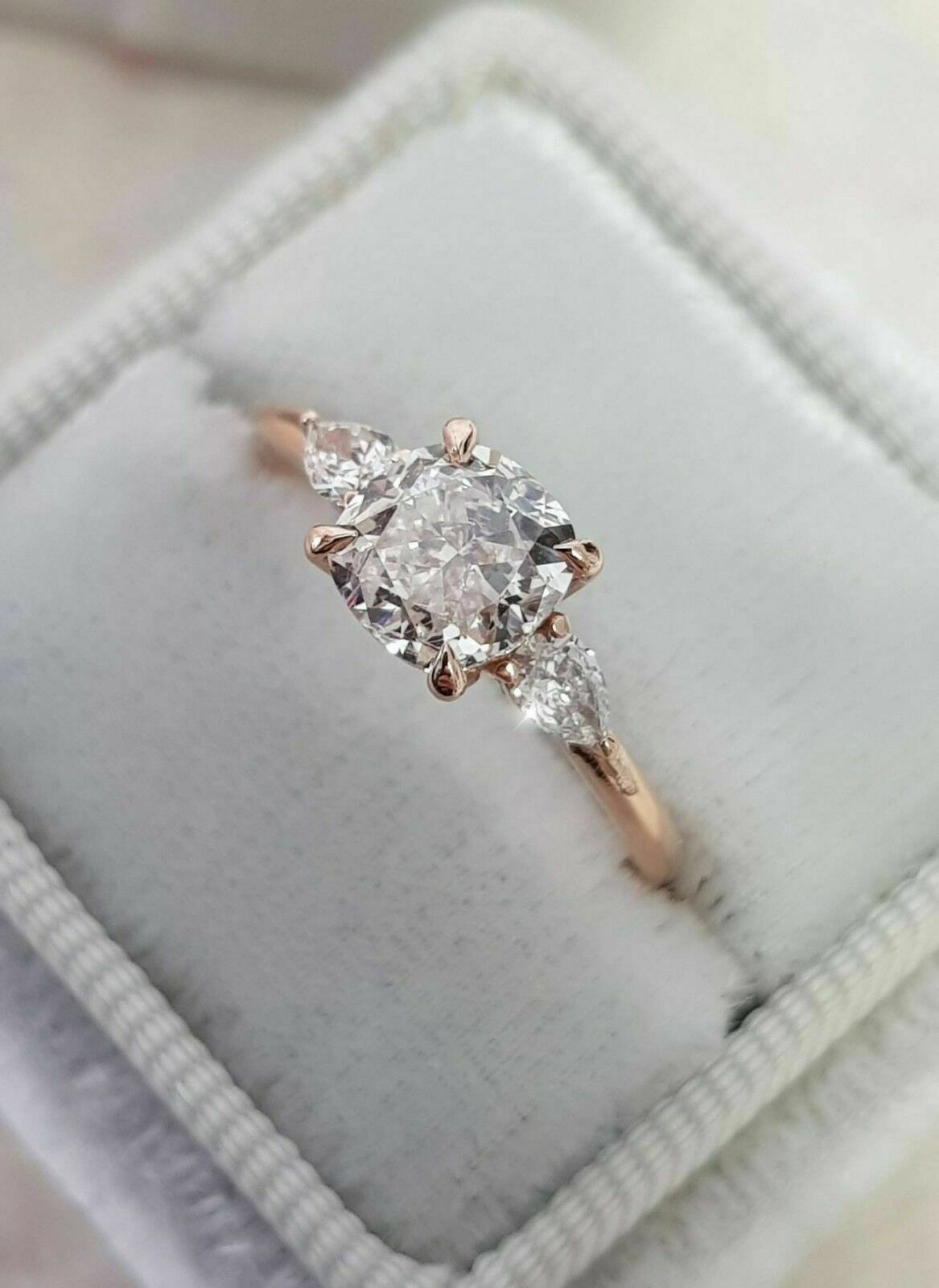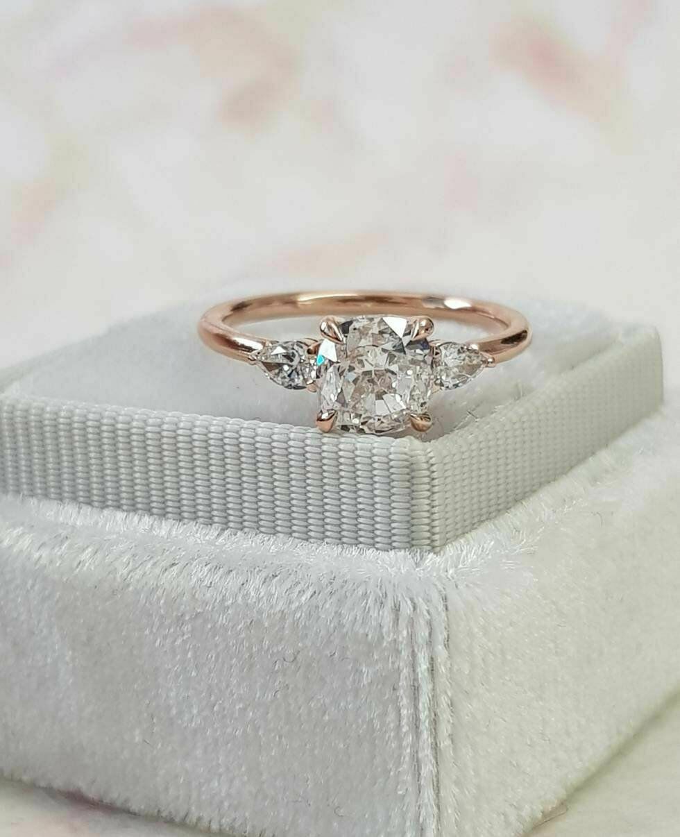2.5ct Cushion Cut Diamond Pear Accent Trilogy Engagement Ring 14k Rose Gold Over