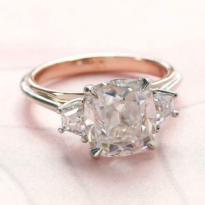 2.5Ct Cushion Cut Diamond Trilogy Ring 14K White Gold Finish Trapezoid Accents