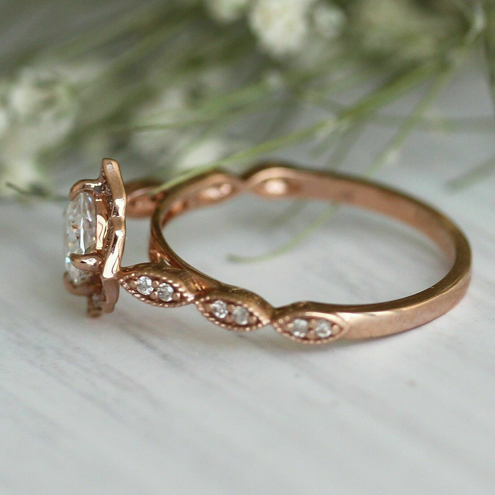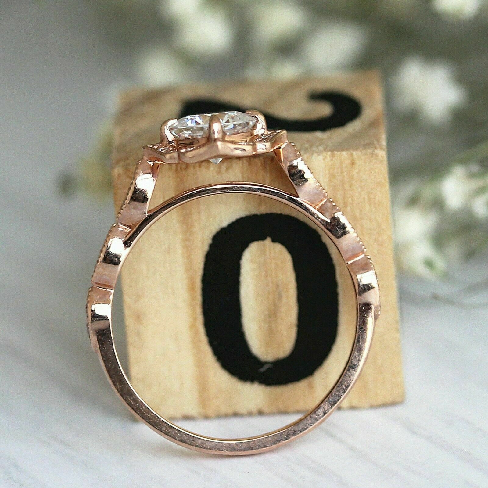 2.5ct Cushion Cut DVVS1 Diamond Vintage Halo Engagement Ring 14K Rose Gold Over