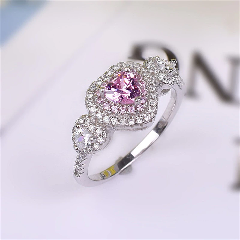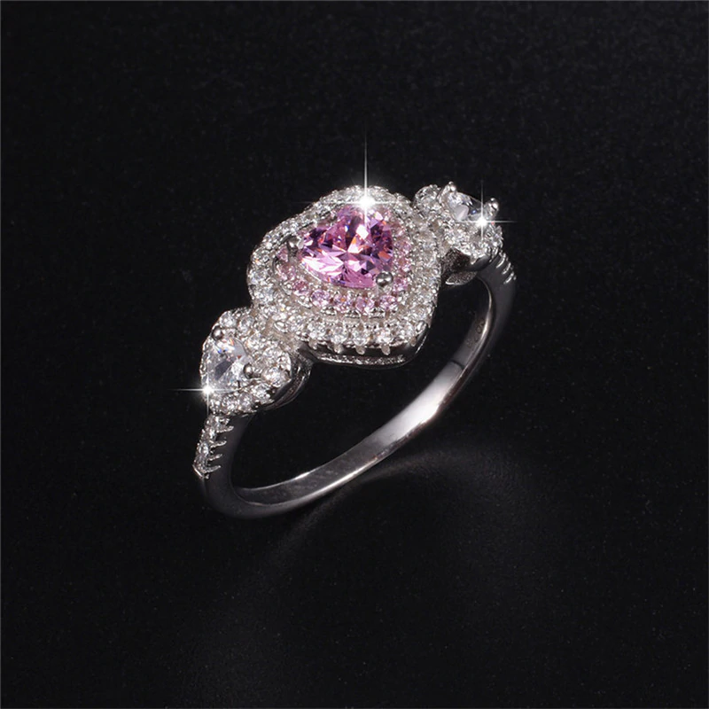 2.5ct Heart Cut Pink Sapphire Engagement Ring 14k White Gold Finish Double Halo
