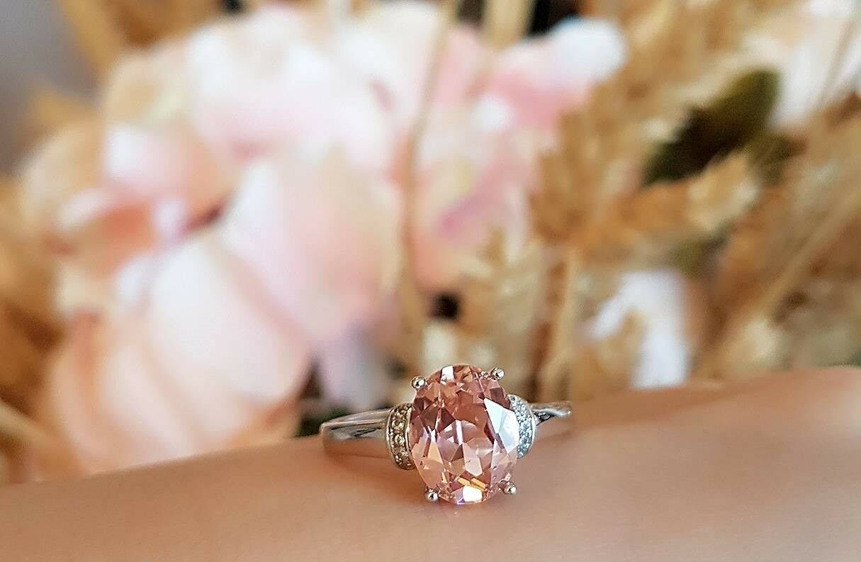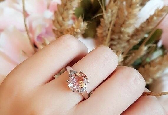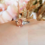 2.5ct Oval Cut Peach Morganite Engagement Ring 14k White Gold Finish Solitaire