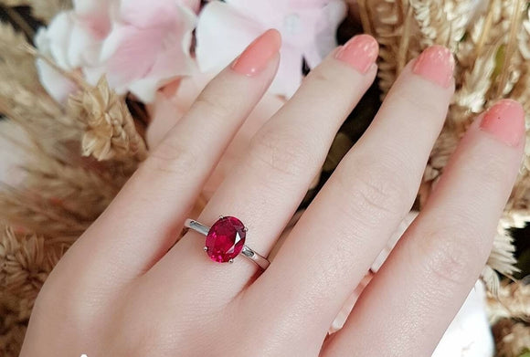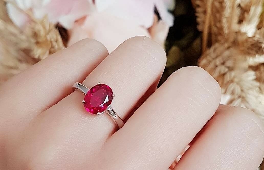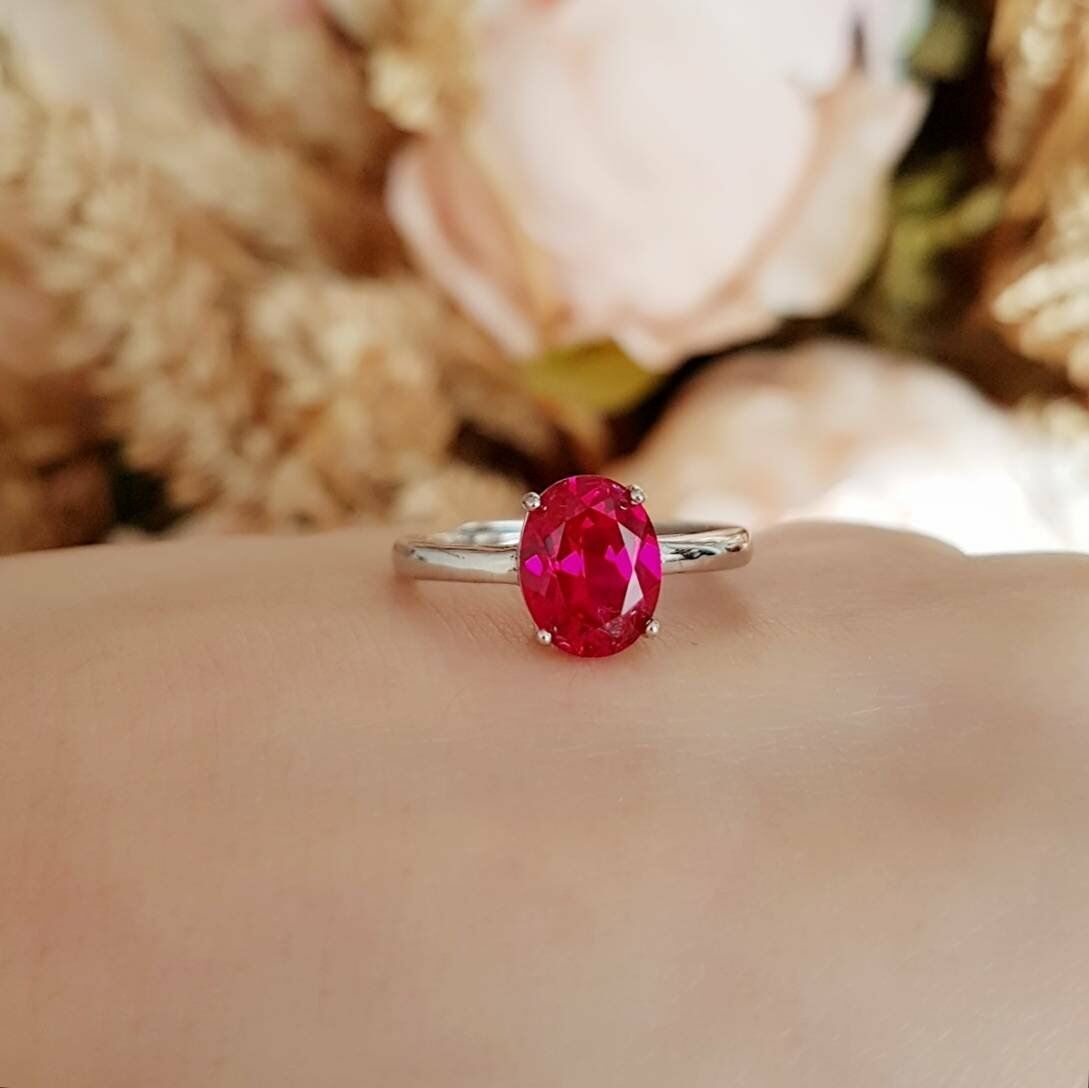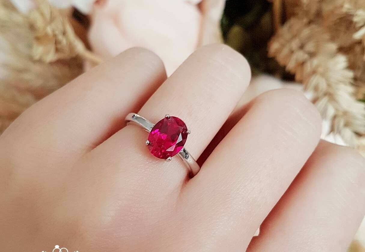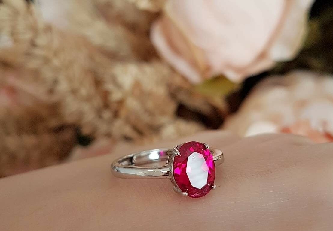 2.5ct Oval Cut Pink Ruby Engagement Ring 14k White Gold Finish Solitaire Promise