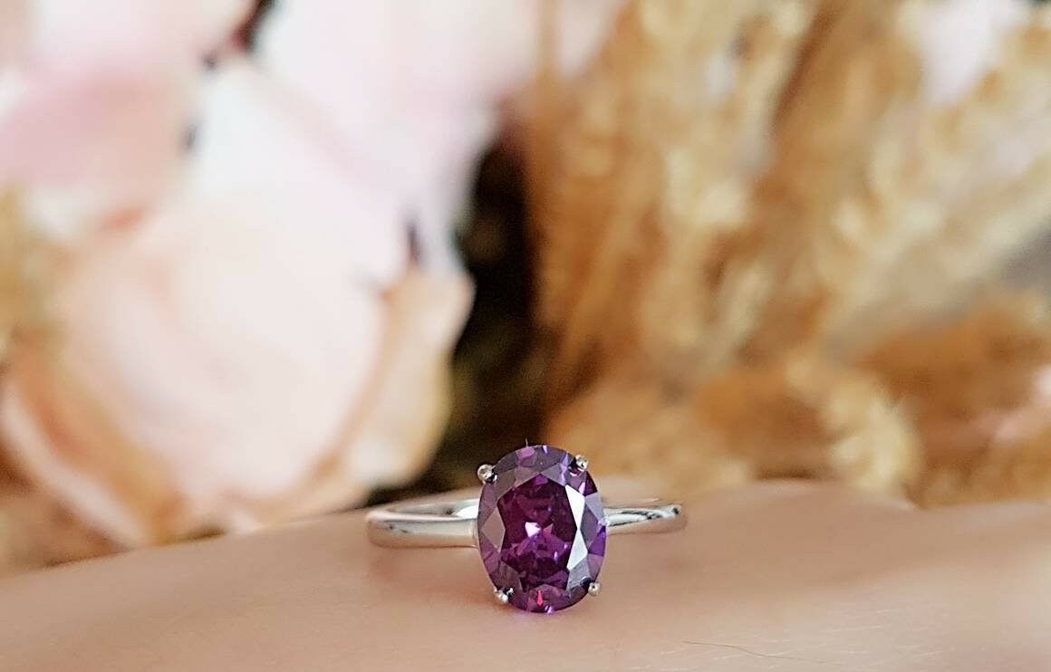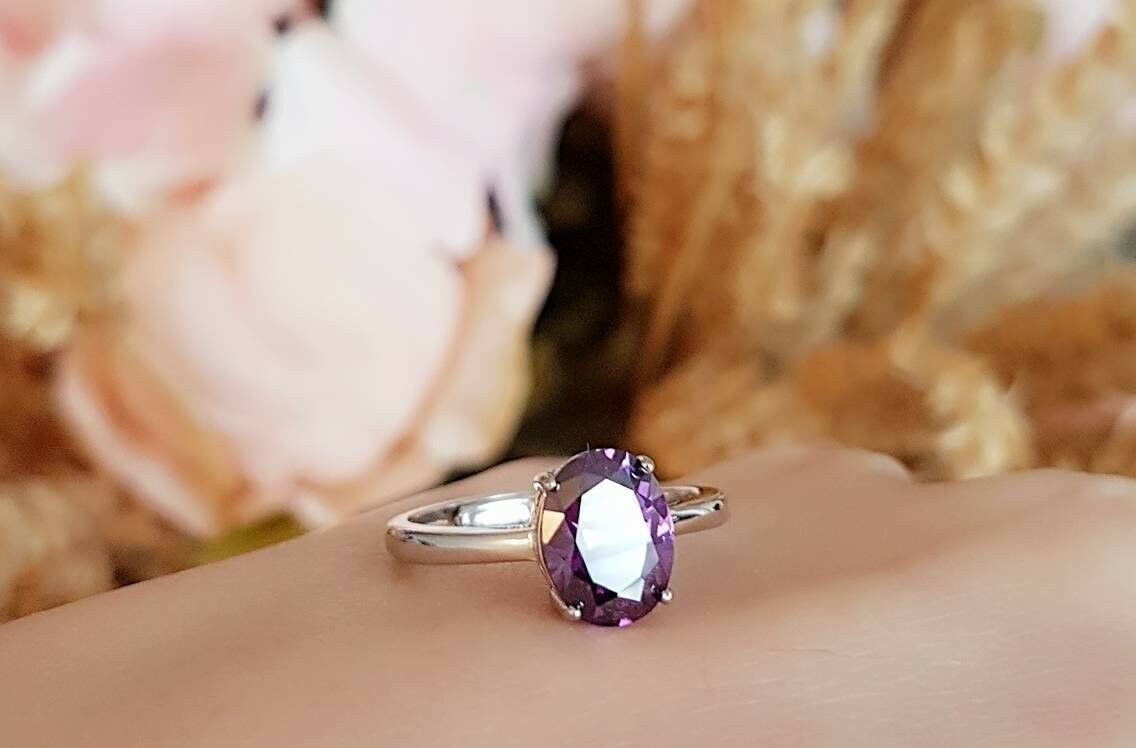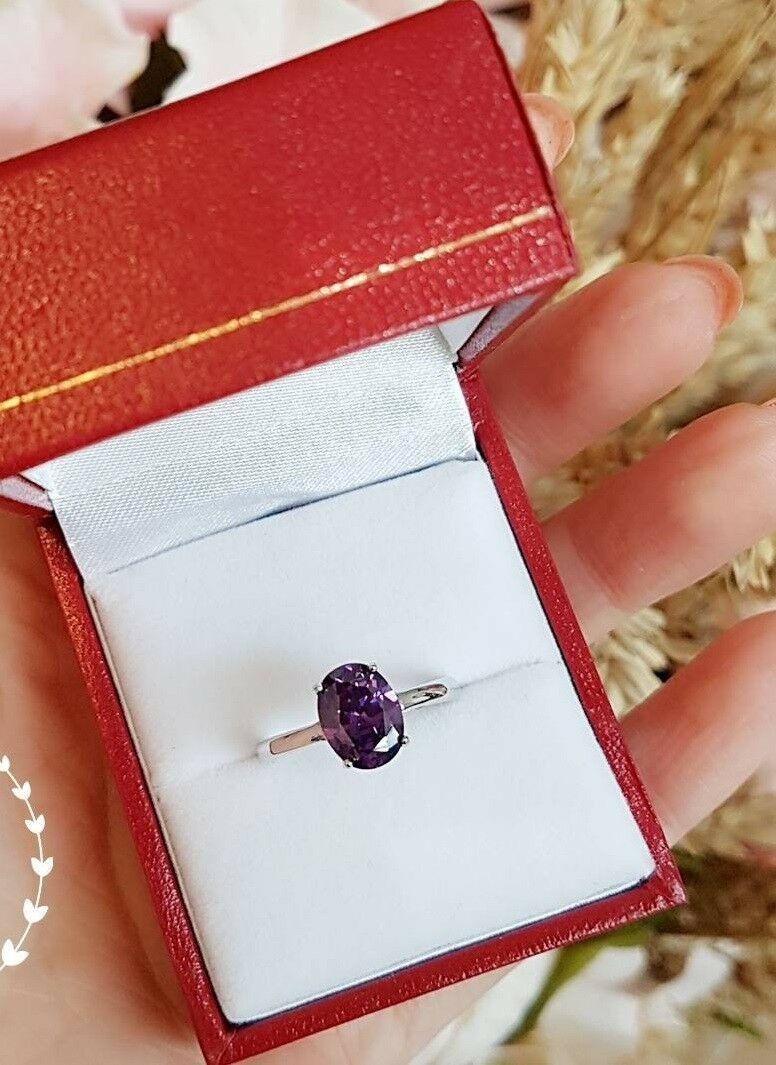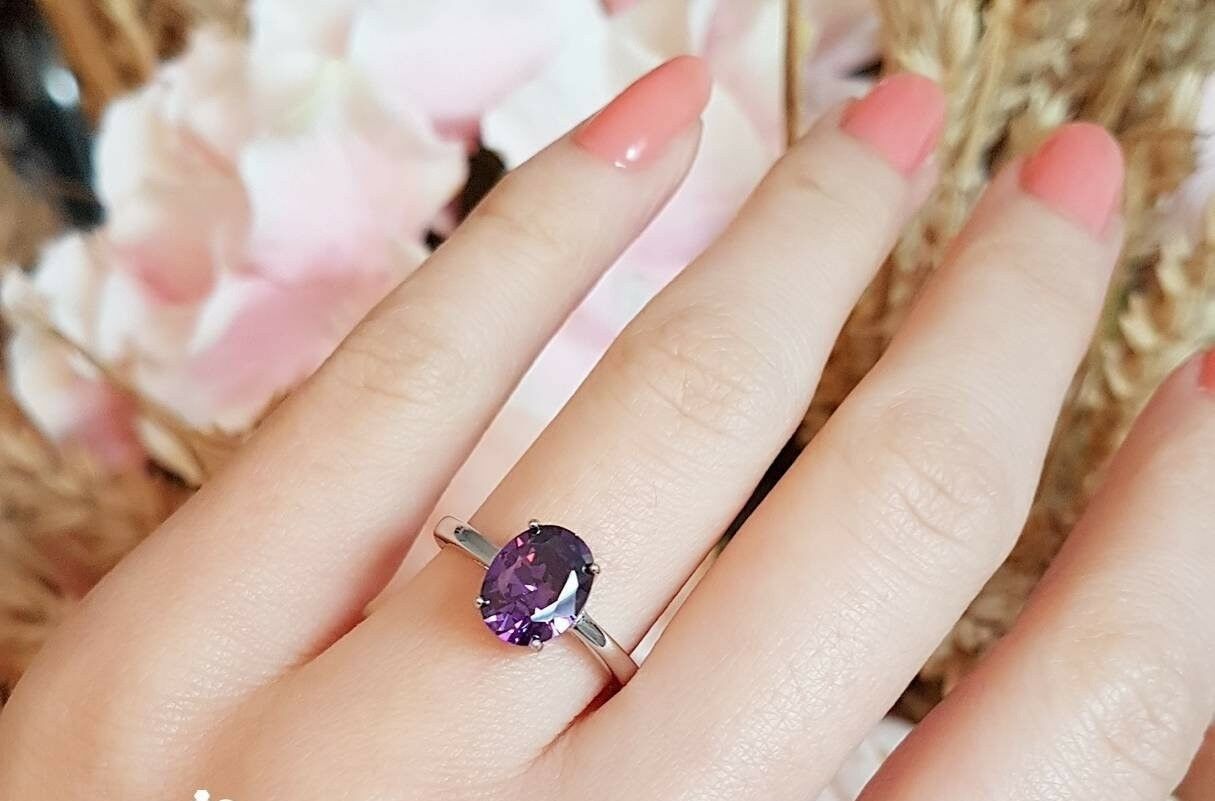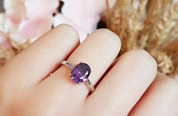 2.5ct Oval Cut Purple Amethyst Engagement Ring 14k White Gold Finish Solitaire