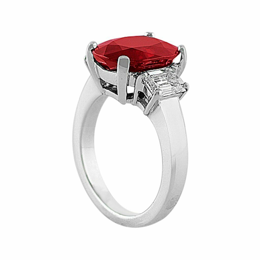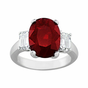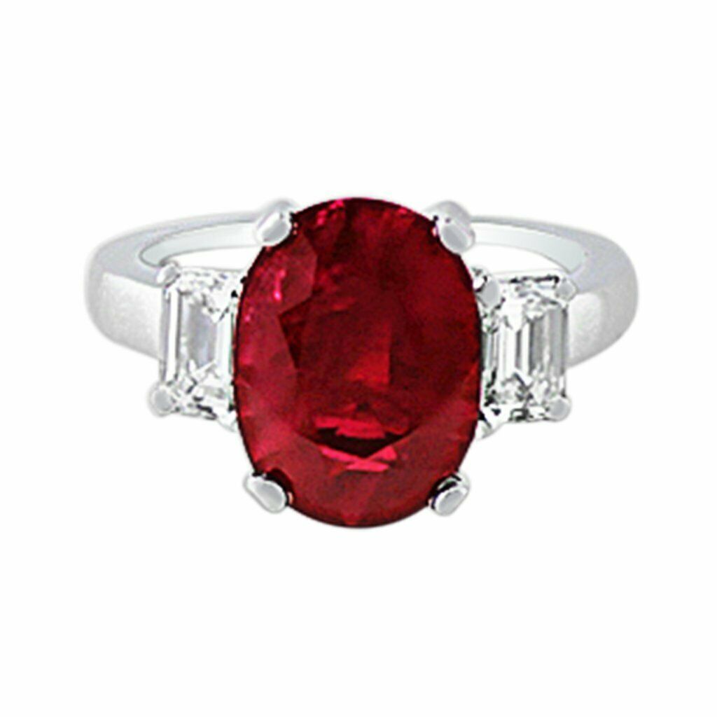 2.5Ct Oval Pink Ruby Trilogy Solitaire Ring 14K White Gold Finish Diamond Accent