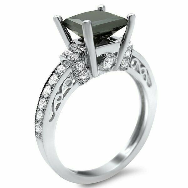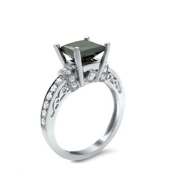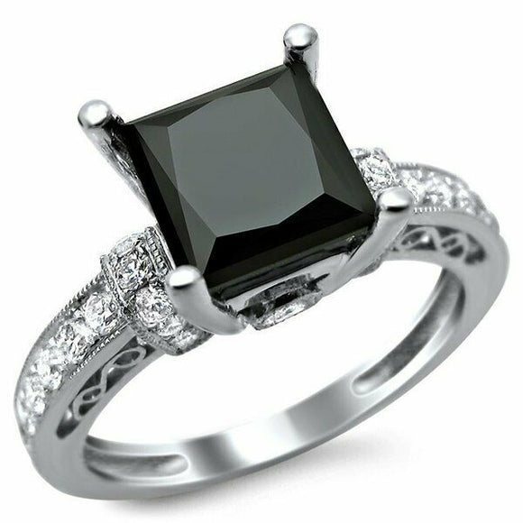 2.5Ct Princess Cut Black Diamond Vintage Engagement Ring 14K White Gold Finish