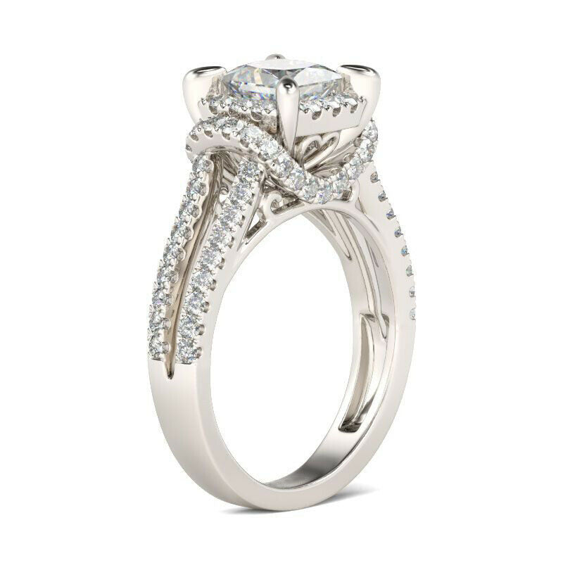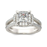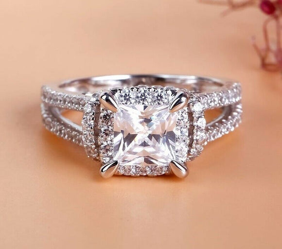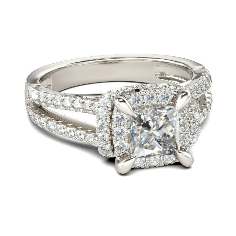2.5Ct Princess Cut Diamond Split Band Halo Engagement Ring 14K White Gold Finish