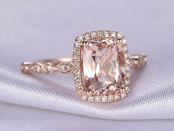 2.5ct Radiant Cut Peach Morganite Vintage Engagement Ring 14k Rose Gold Finish