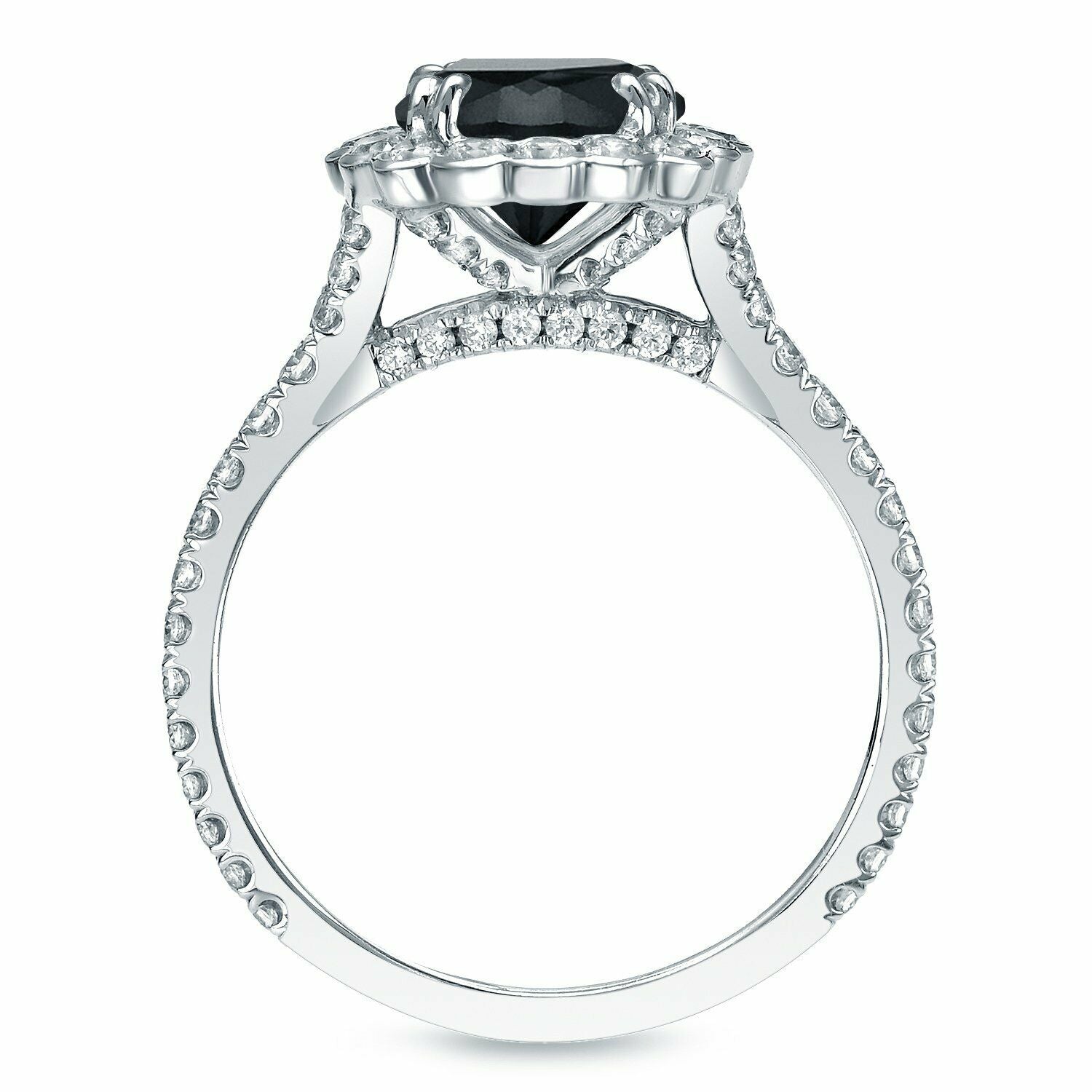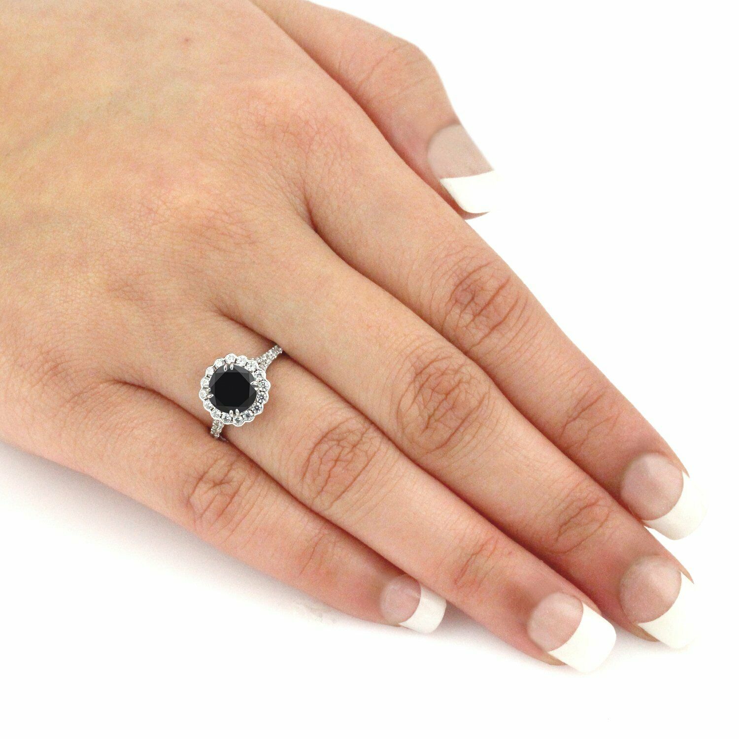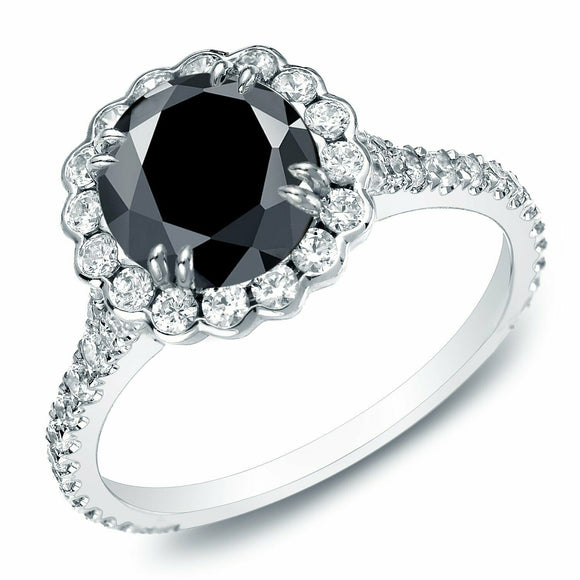 2.5Ct Round Cut Black Diamond Halo Floral Engagement Ring 18K White Gold Finish