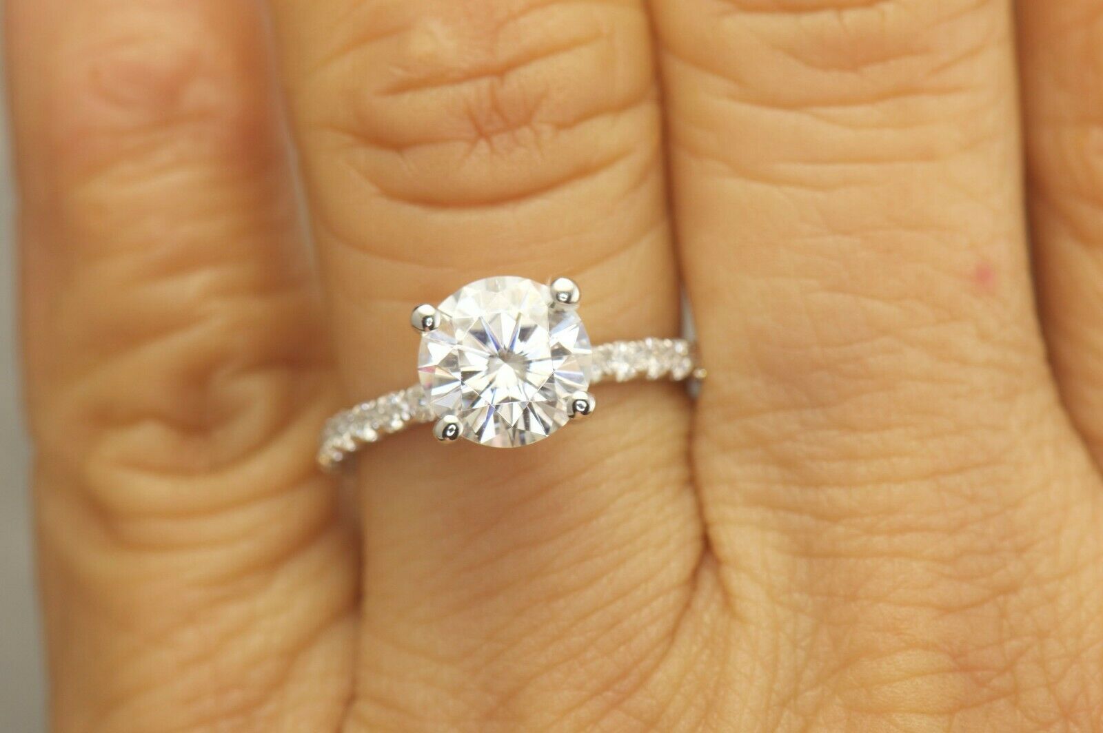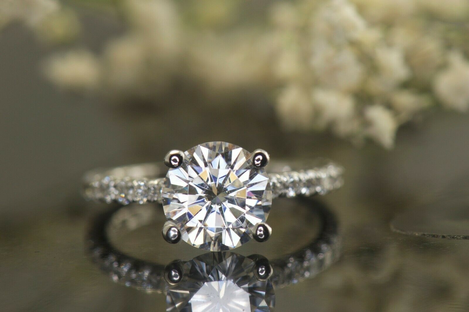 2.5Ct Round Cut Diamond Accents Solitaire Engagement Ring 14K White Gold Finish