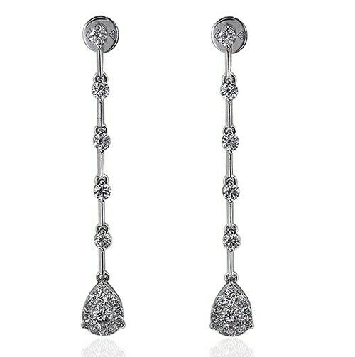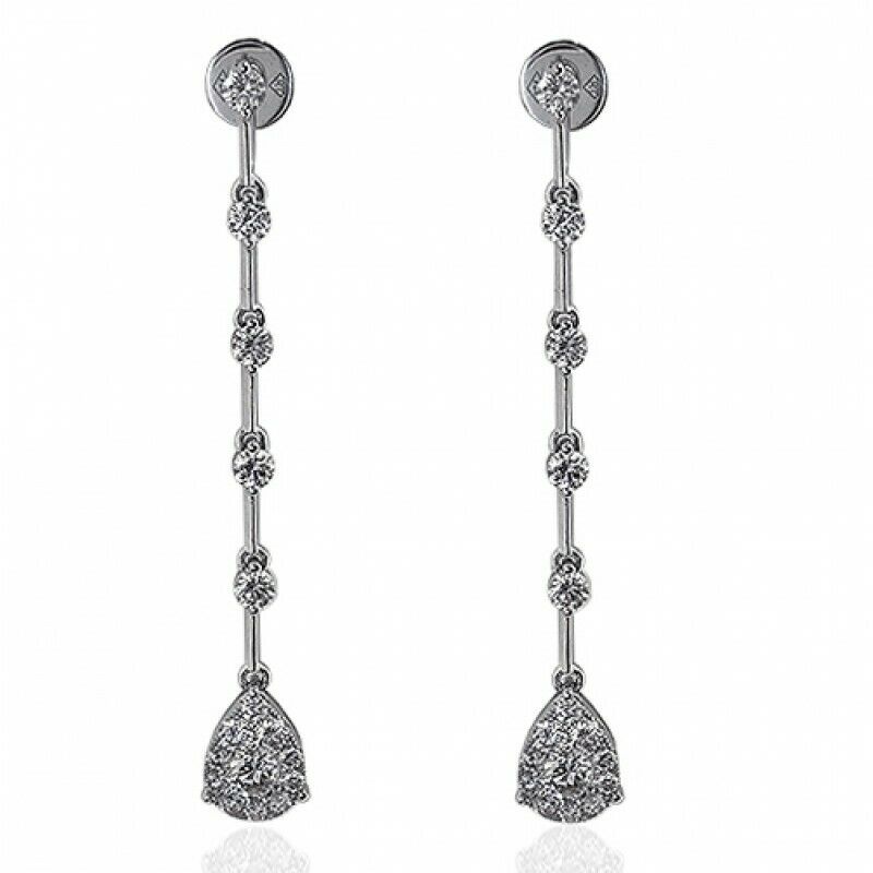 2.5Ct Round Cut Diamond Cluster Vertical Bar Drop Earrings 14K White Gold Finish