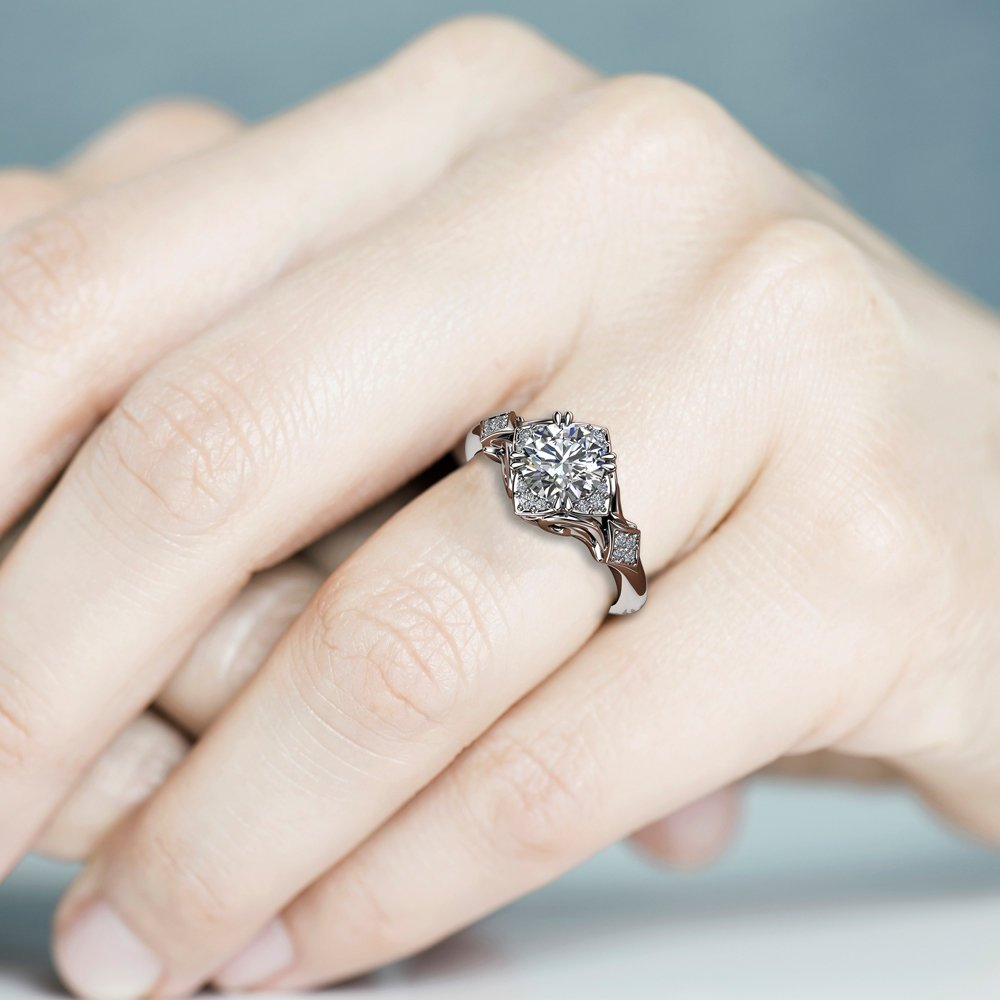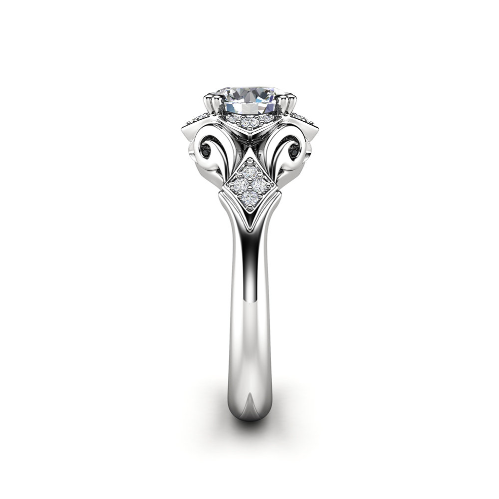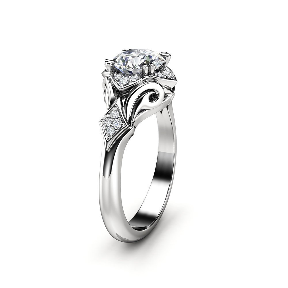 2.5ct Round Cut Diamond Engagement Ring 14k White Gold Finish Unique Art Deco