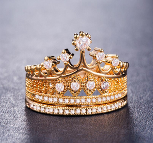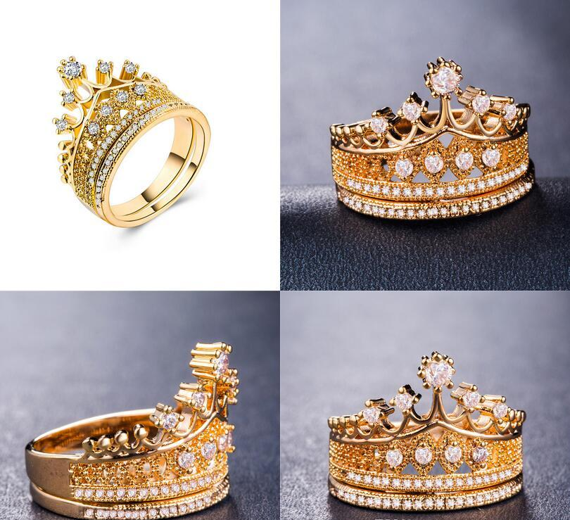 2.5ct Round Cut Diamond Engagement Ring 14k Yellow Gold Finish Crown Wedding Set
