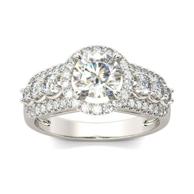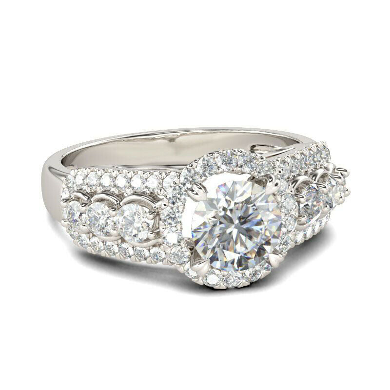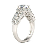 2.5Ct Round Cut Diamond Halo Engagement Ring 14K White Gold Finish Round Accents