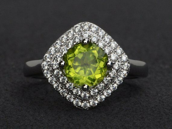 2.5ct Round Cut Green Peridot Engagement Ring 14k White Gold Finish Double Halo