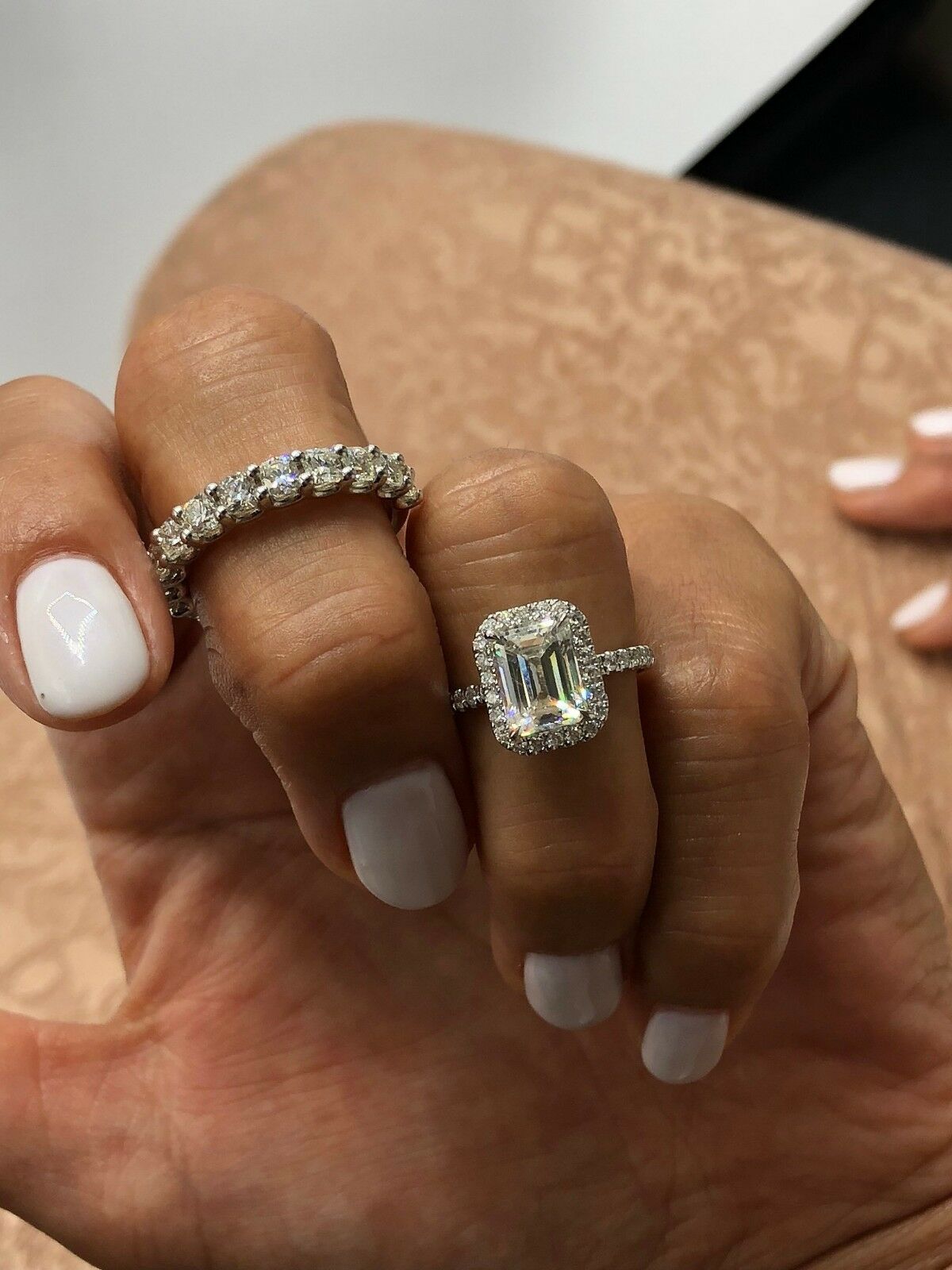 2.6ct Emerald Cut Diamond Halo Solitaire Engagement Ring 14k White Gold Finish