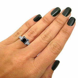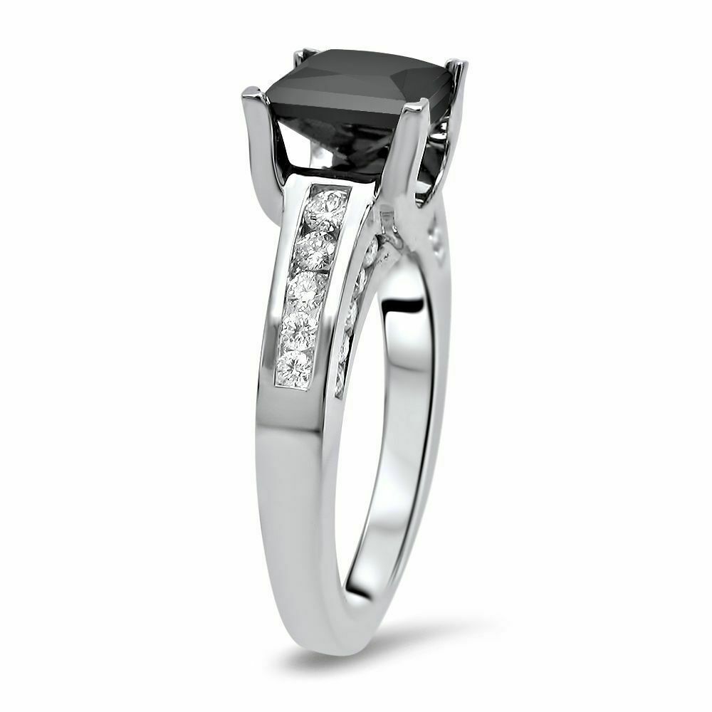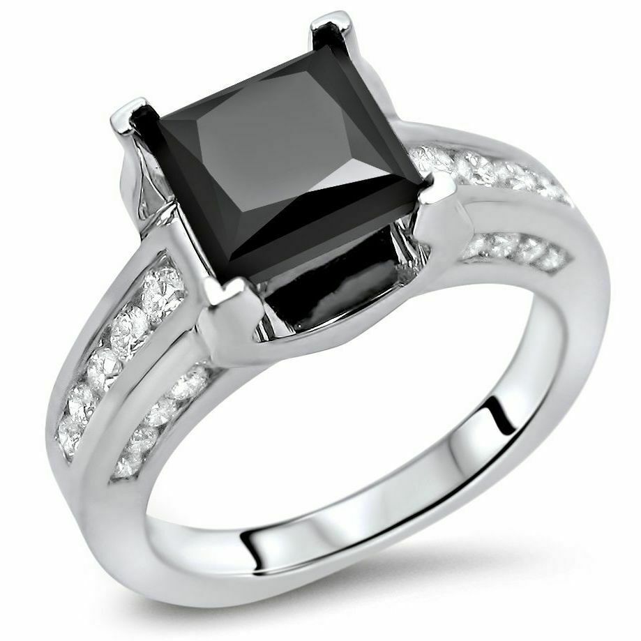 2.6Ct Princess Cut Black Diamond Stylish Solitaire Ring 14K White Gold Finish