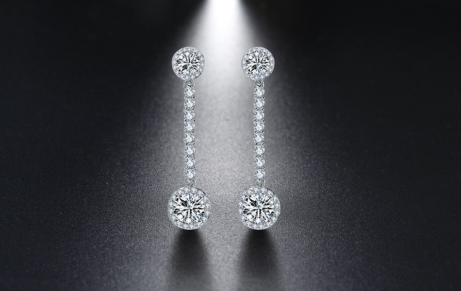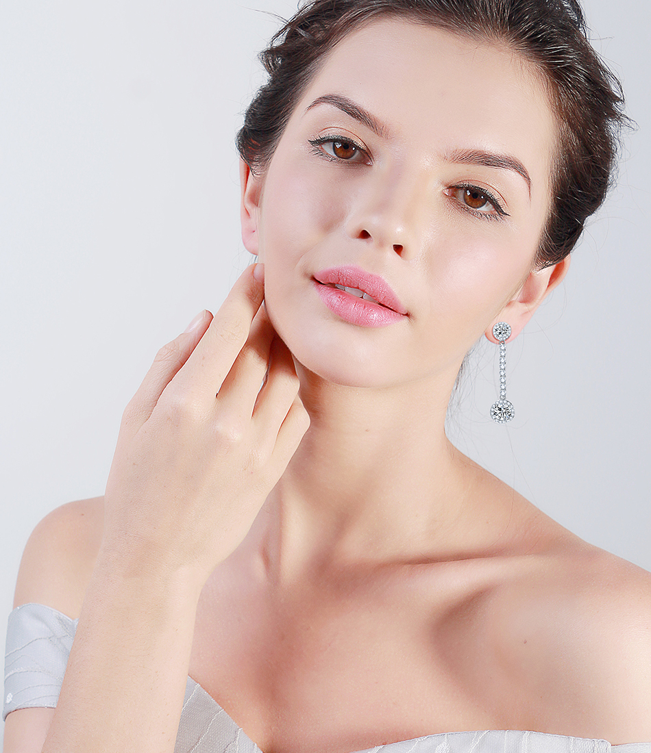 2.6ct Round Cut Diamond Classic Style Long Drop Earrings 14k White Gold Finish