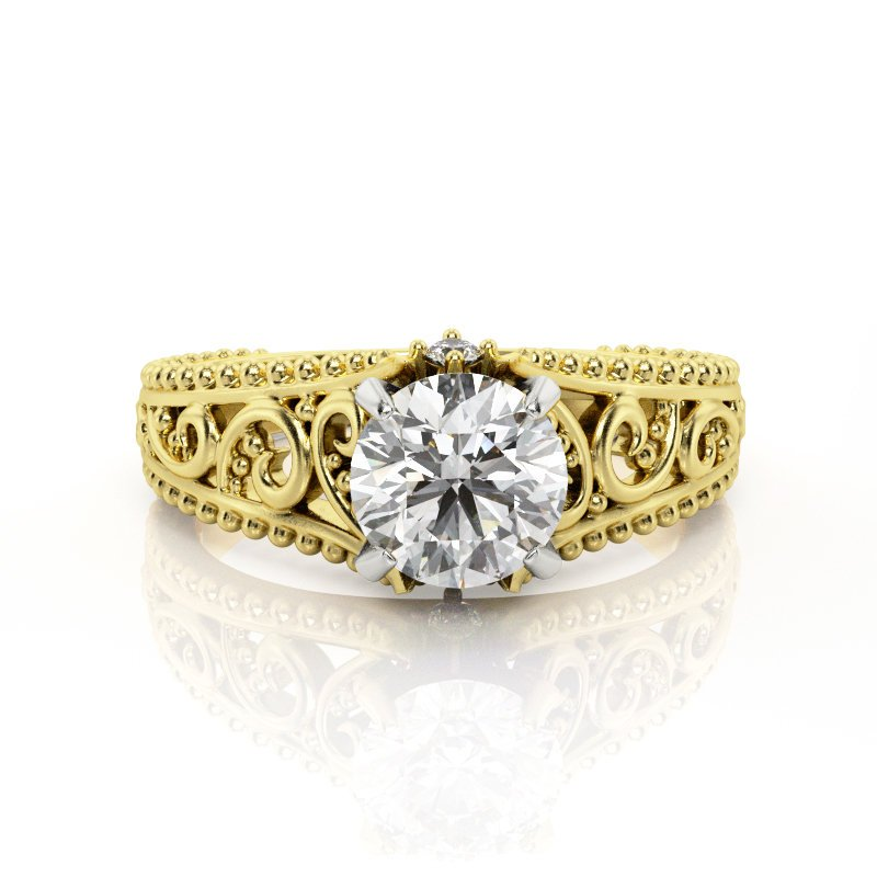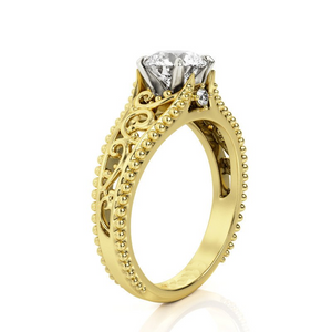 2.6ct Round Cut Diamond Engagement Ring 14k Dual Tone Finish Filigree Milgrain