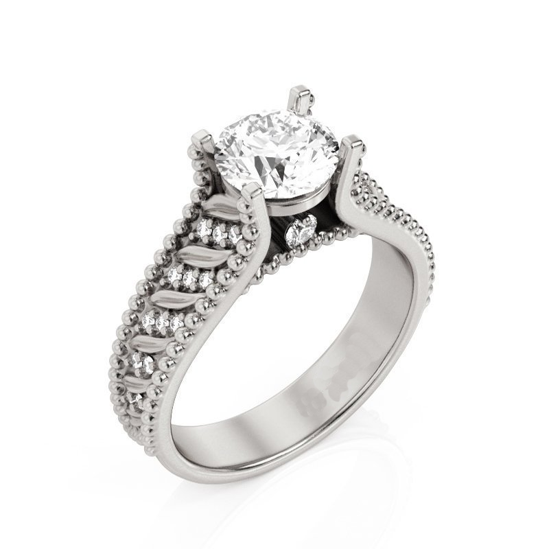2.6ct Round Cut Diamond Engagement Ring 14k White Gold Finish Leaves Filigree