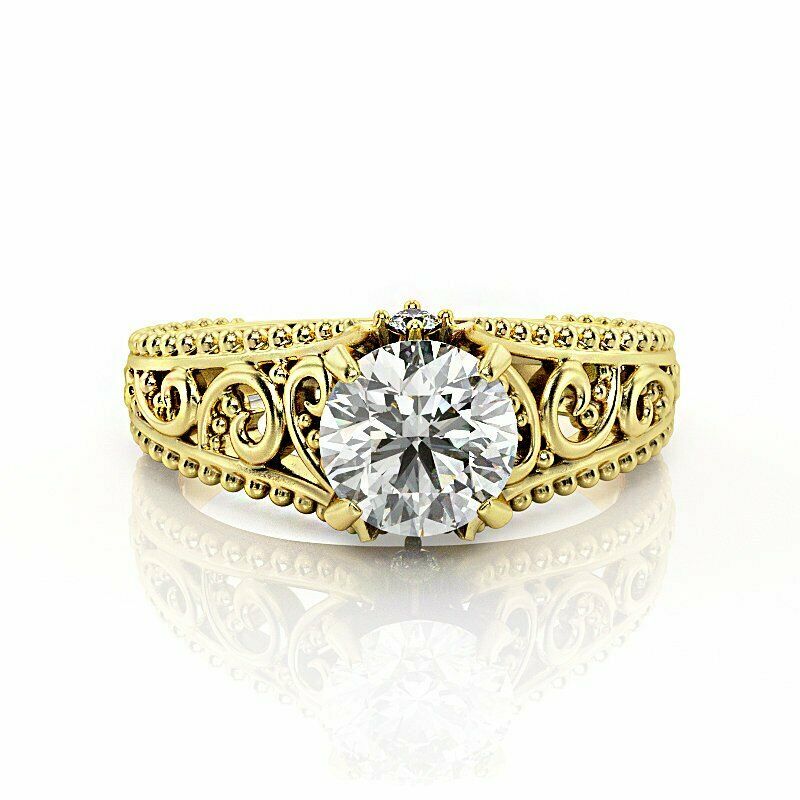 2.6ct Round Cut Diamond Engagement Ring 14k Yellow Gold Finish Art Deco Filigree