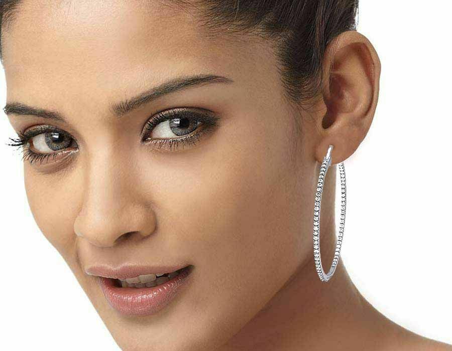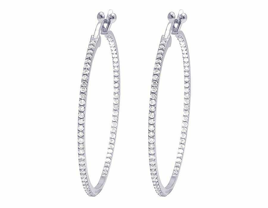 2.75ct Round Cut VVS1D Diamond Inside Out Hoop Earrings 14k White Gold Finish