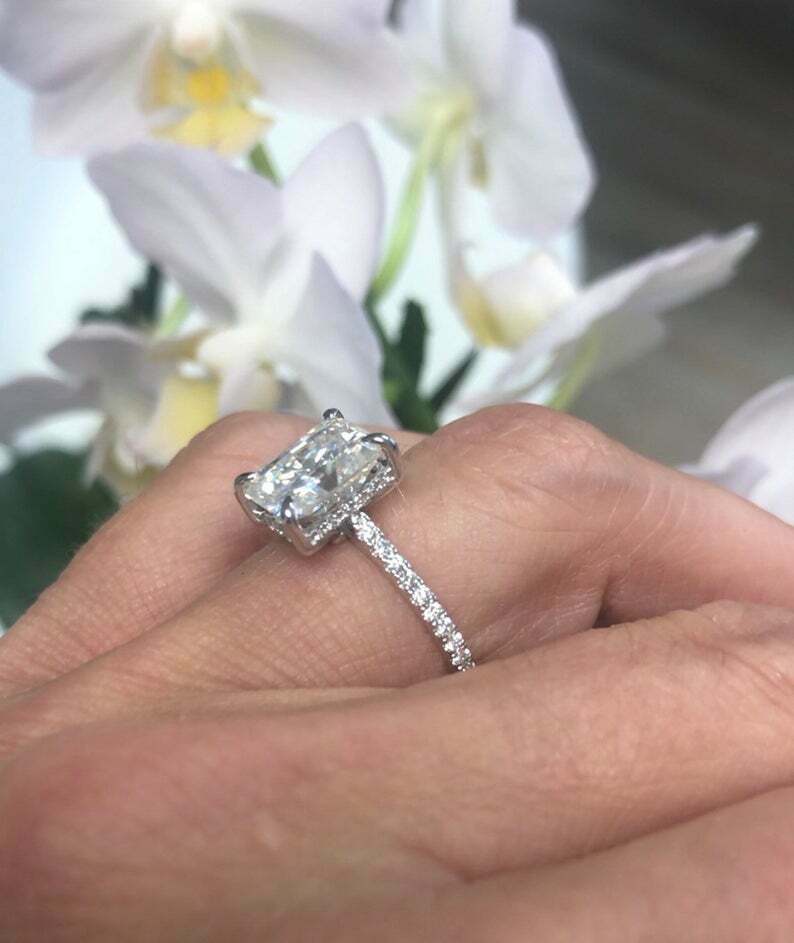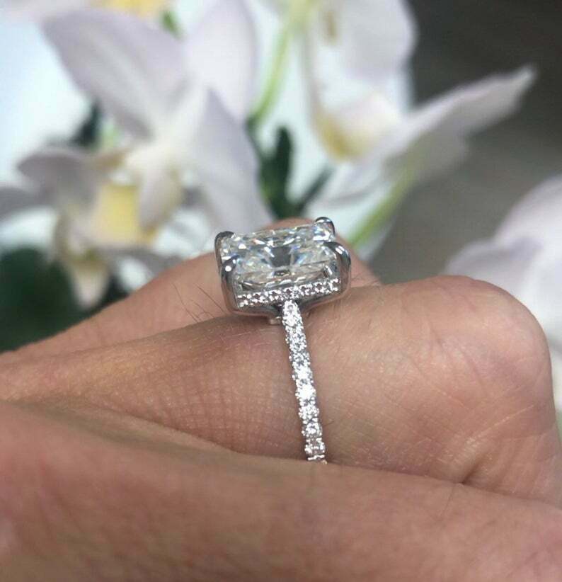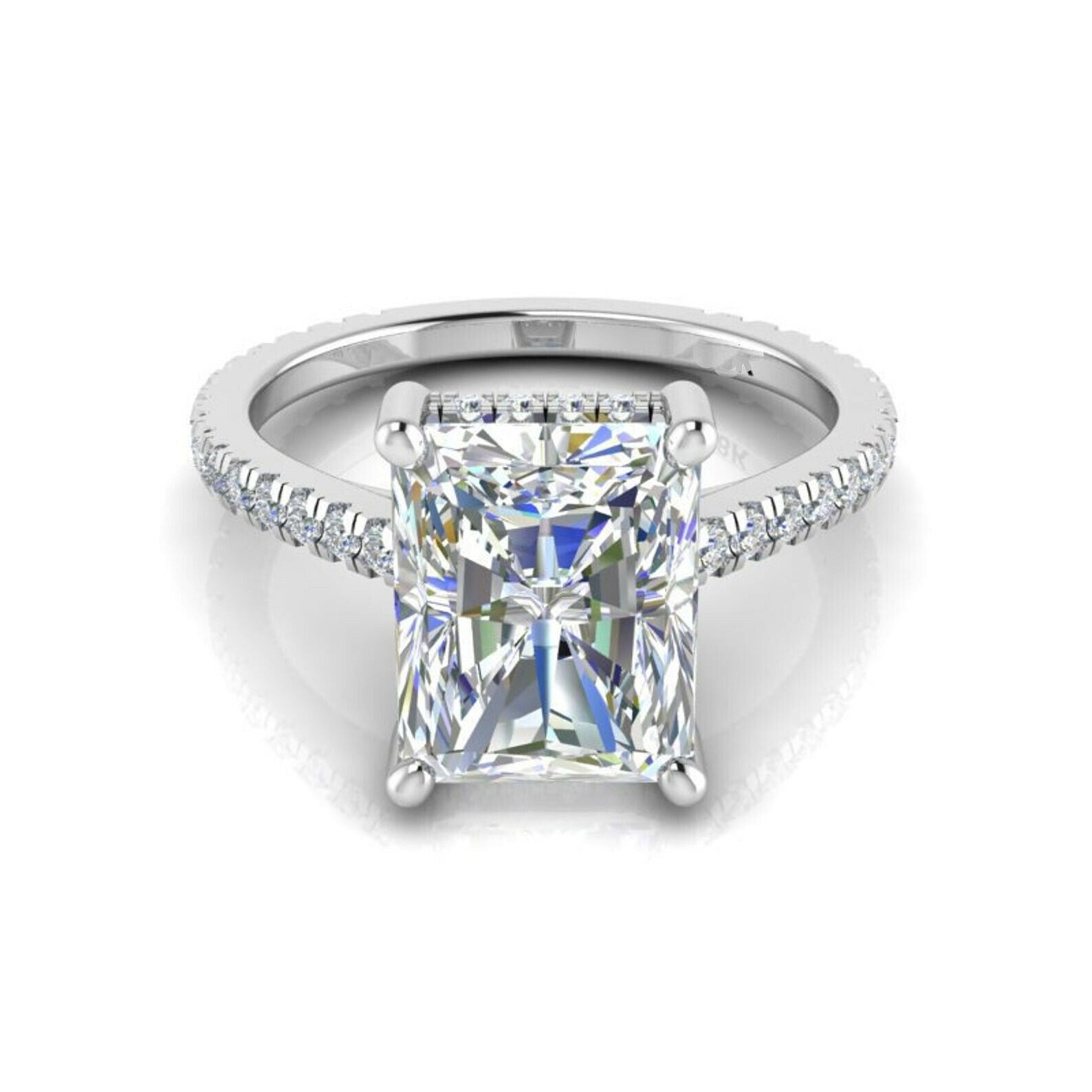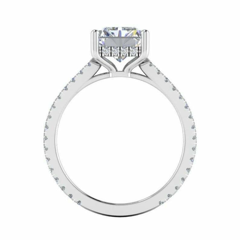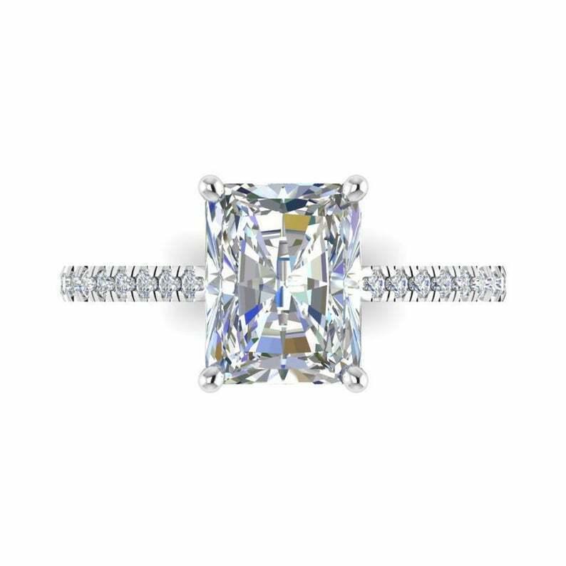 2.7ct Radiant Cut Diamond with Accents Solitaire Ring 14k White Gold Finish