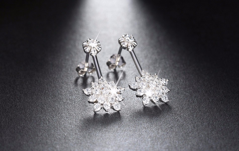 2.8ct Round Cut Diamond Flower Design Women Stud Earrings 14k White Gold Finish