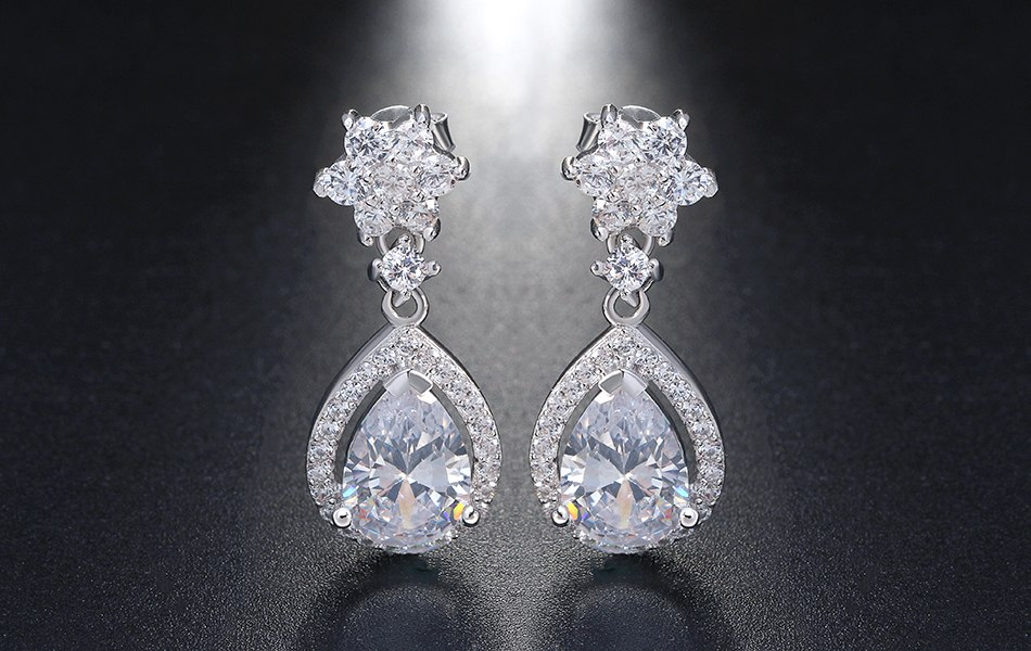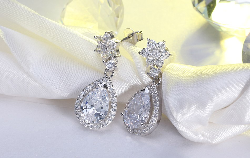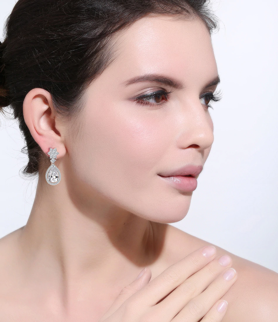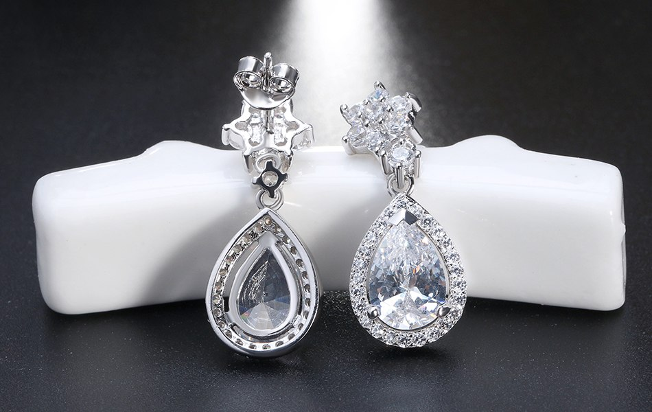 2.9ct Pear Cut VVS1D Diamond Halo Teardrop Stud Earrings 14k White Gold Finish