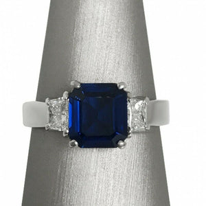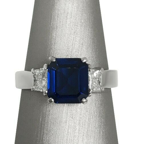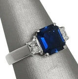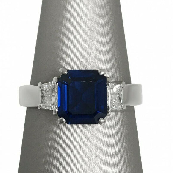2Ct Asscher Cut Blue Sapphire Trapezoid Accents Trilogy Ring 14K White Gold Over