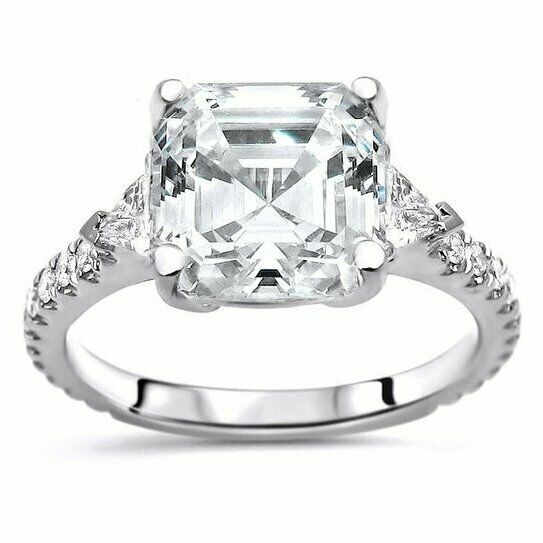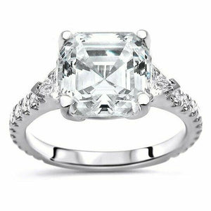 2Ct Asscher Cut Diamond Solitaire Ring 14K White Gold Over Trillion Round Accent
