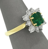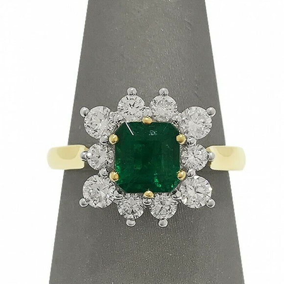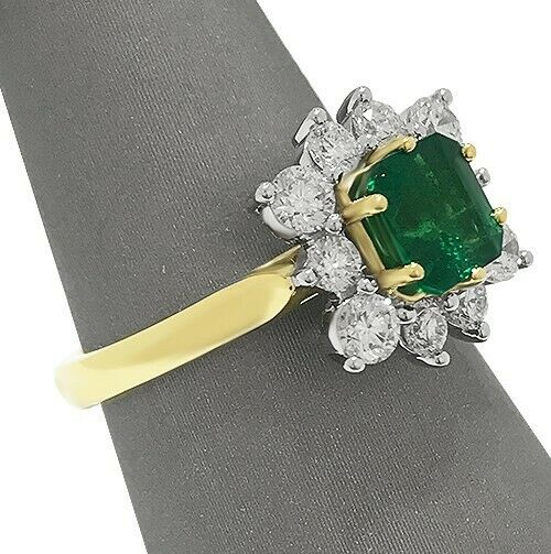 2Ct Asscher Cut Green Emerald Diamond Floral Halo Ring 14K Dual Tone Gold Finish