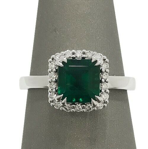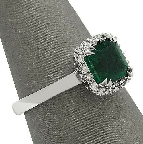 2Ct Asscher Cut Green Emerald Diamond Halo Engagement Ring 18K White Gold Finish