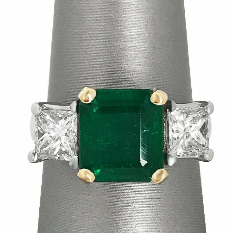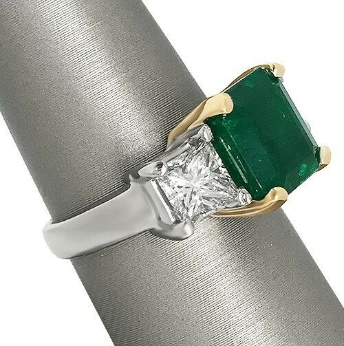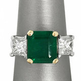 2Ct Asscher Cut Green Emerald Three Stone Engagement Ring 14K Dual Gold Finish