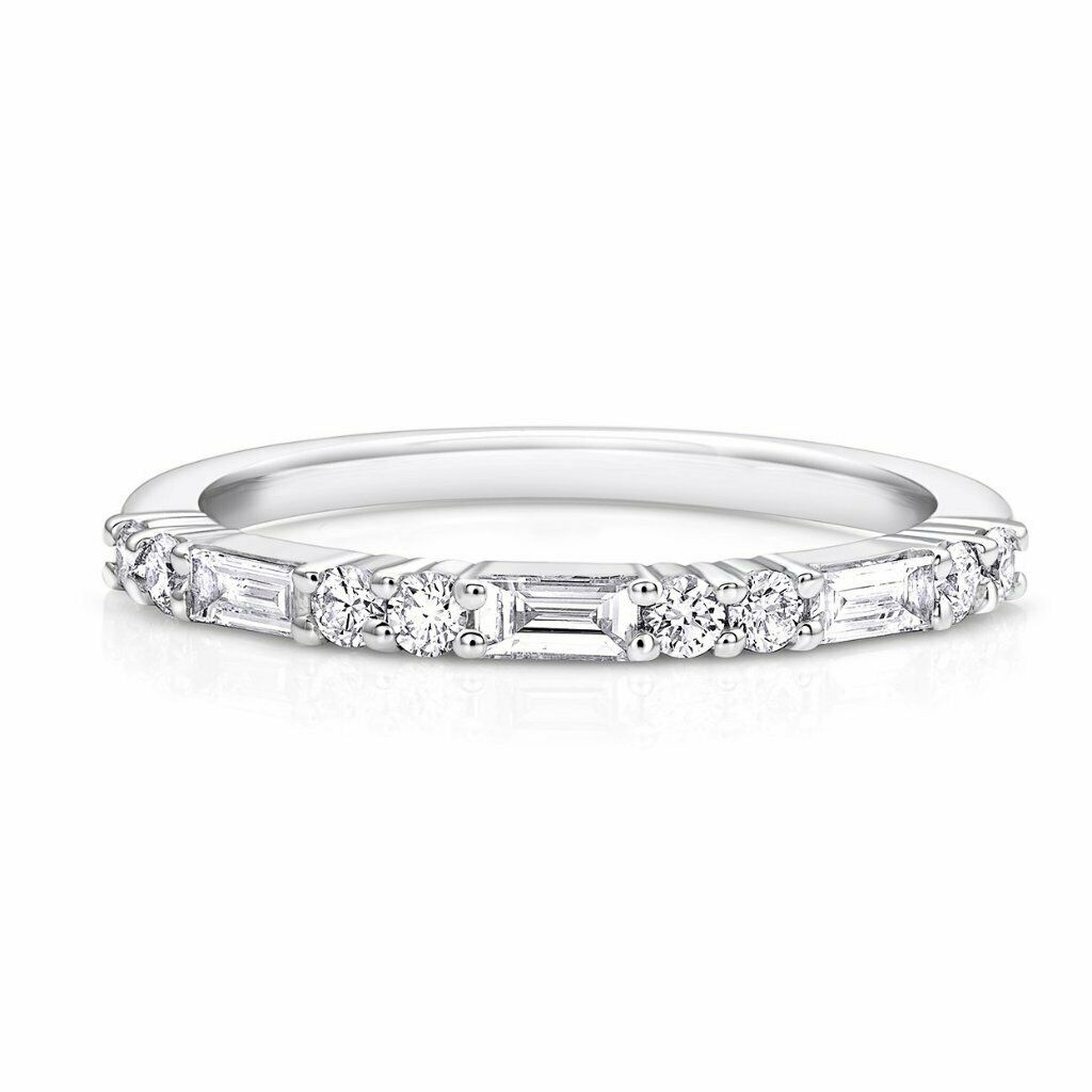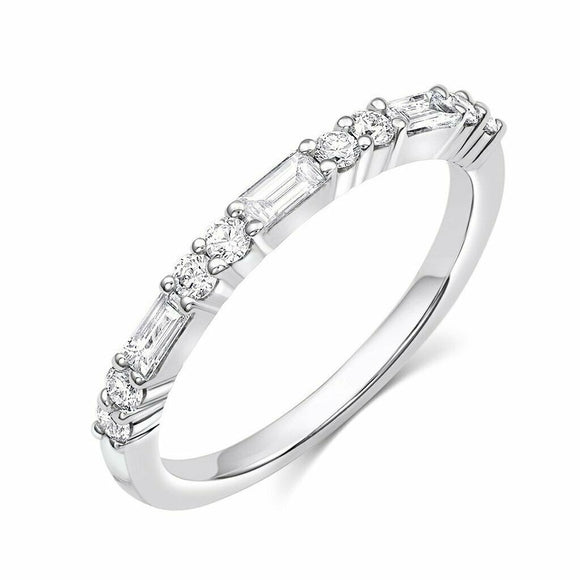 2Ct Baguette Cut Diamond Half Eternity Women Wedding Band 14K White Gold Finish