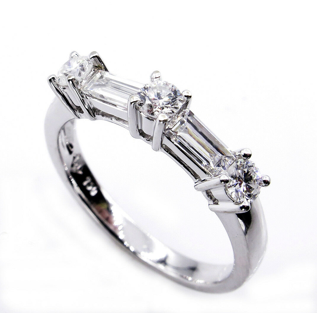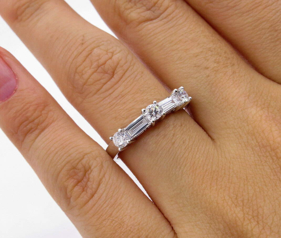 2Ct Baguette Round Cut Diamond Stylish Wedding Ring Band 14K White Gold Finish