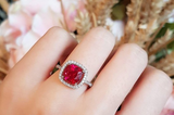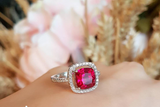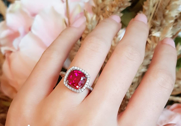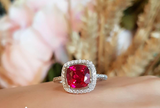 2ct Cushion Brilliant Cut Pink Ruby Engagement Ring 14k White Gold Finish Halo