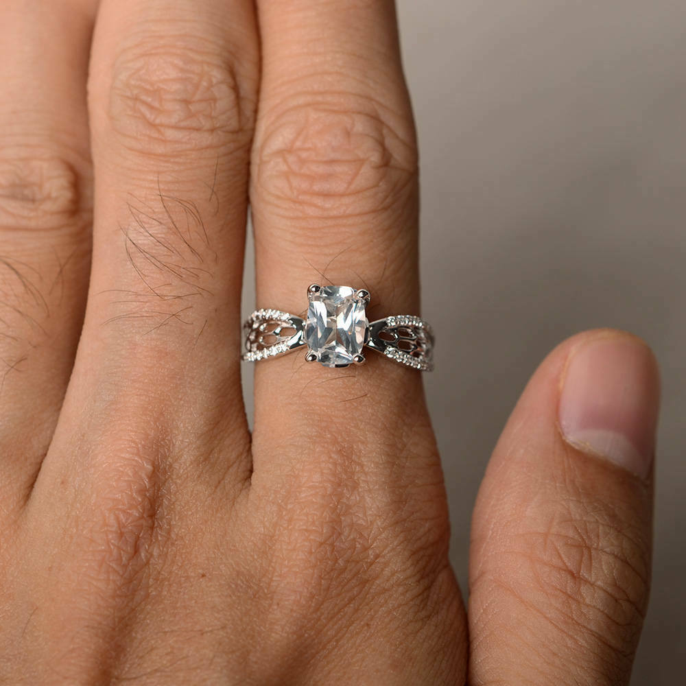 2ct Cushion Cut Blue Aquamarine Engagement Ring 14k White Gold Finish Cocktail