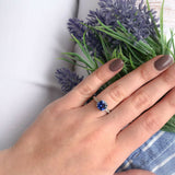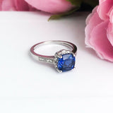 2Ct Cushion Cut Blue Sapphire Diamond Floral Engagement Ring 14K White Gold Over