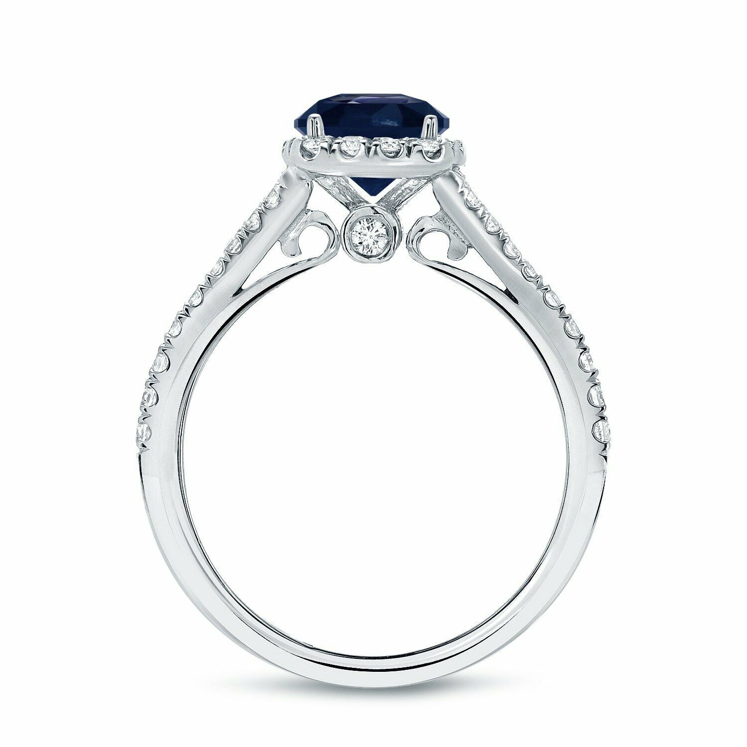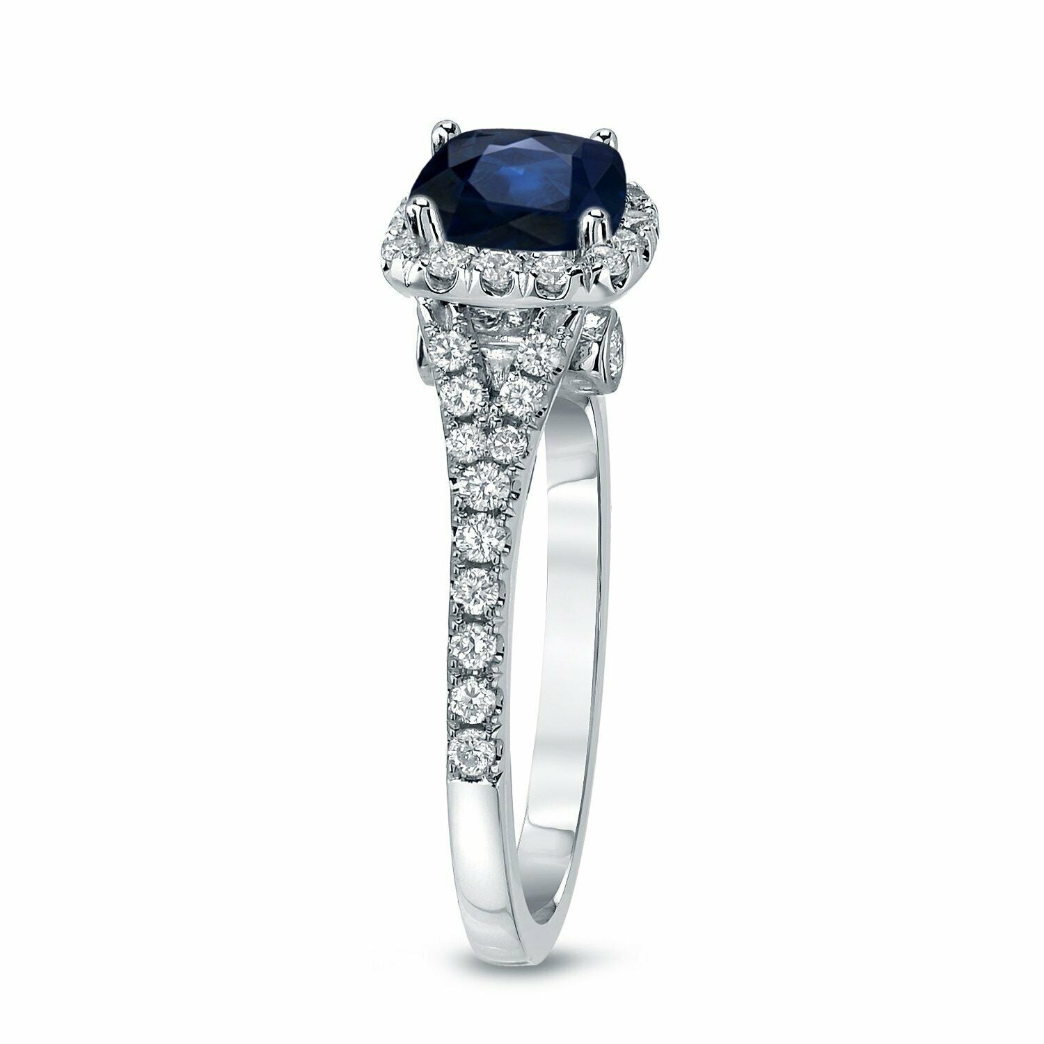 2Ct Cushion Cut Blue Sapphire Diamond Split Band Halo Ring 14K White Gold Finish