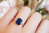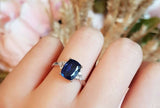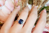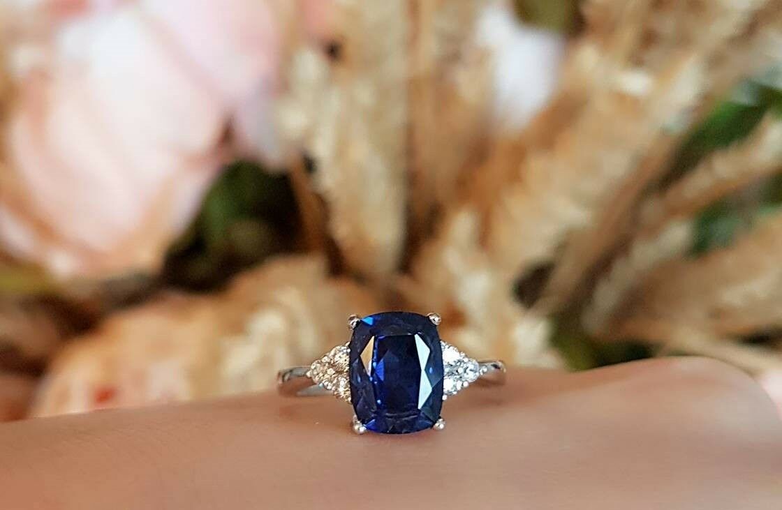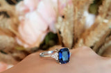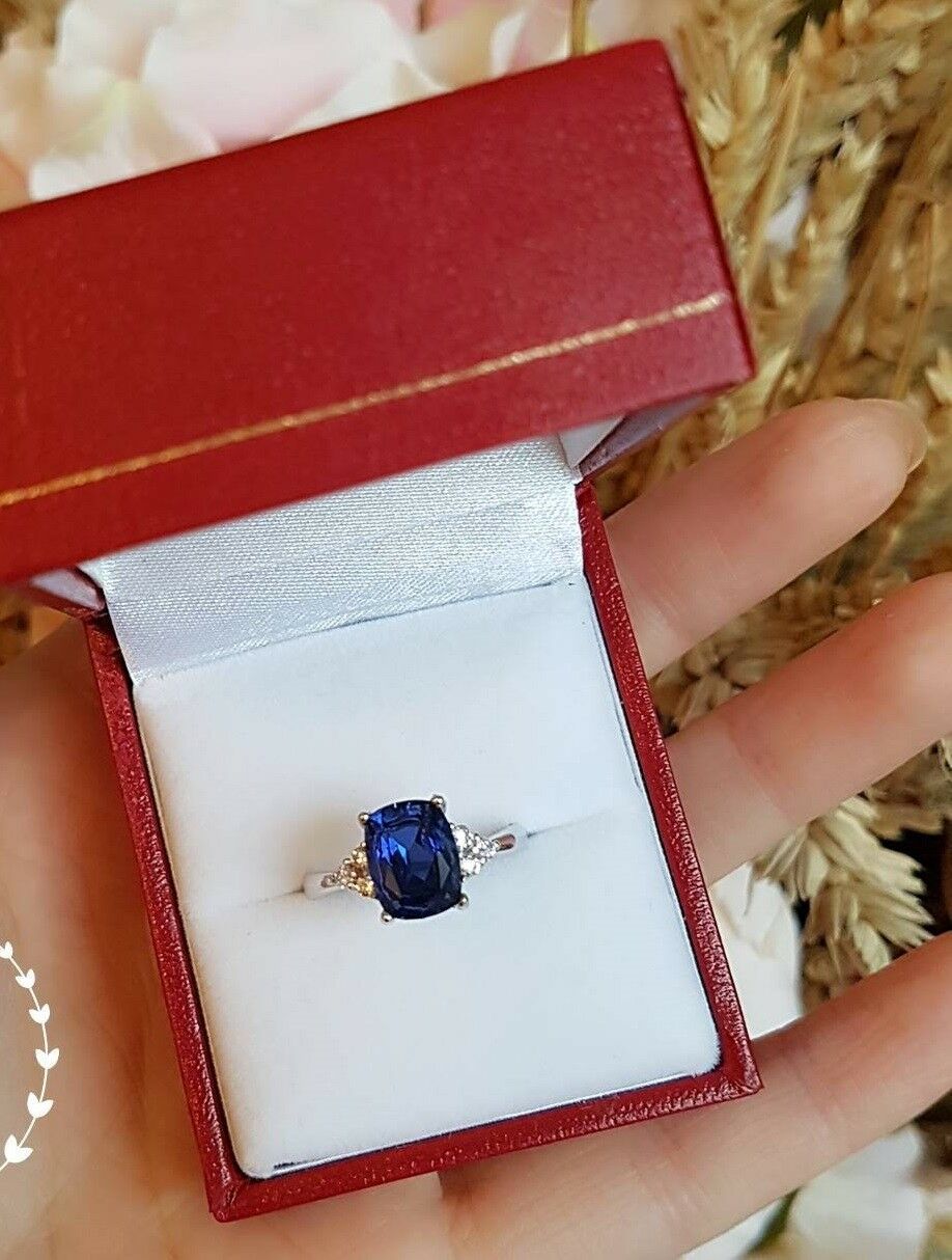 2ct Cushion Cut Blue Sapphire Engagement Ring 14k WhiteGold Over Trilogy Promise