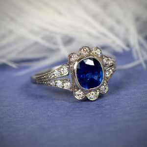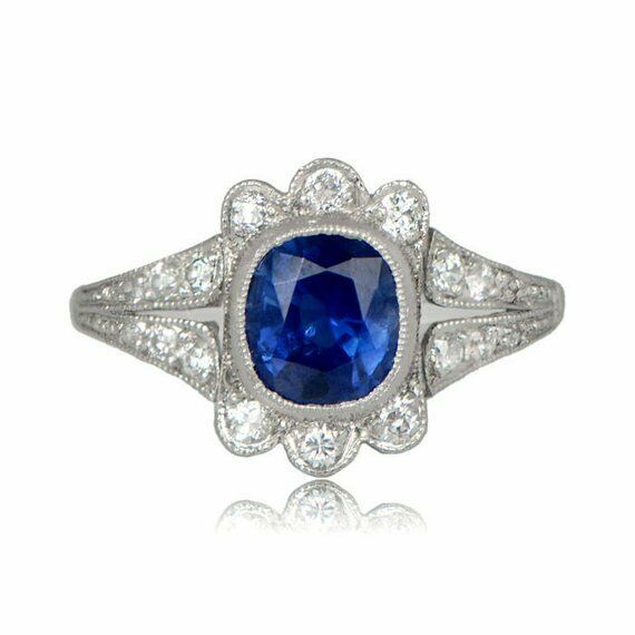 2ct Cushion Cut Blue Sapphire Engagement Ring 18k White Gold Finish Split Shank