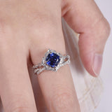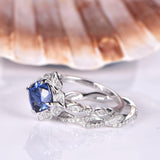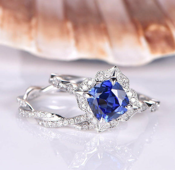 2ct Cushion Cut Blue Tanzanite Vintage Floral Engagement Ring 14k WhiteGold Over