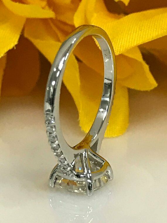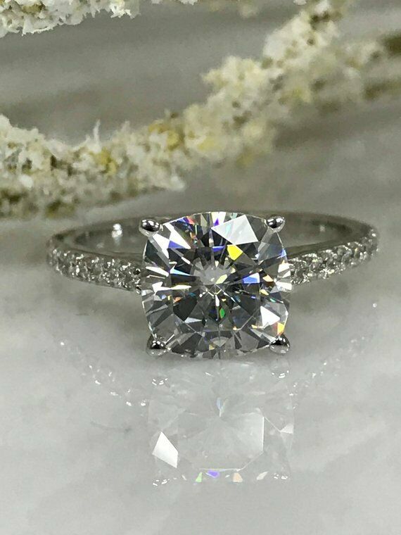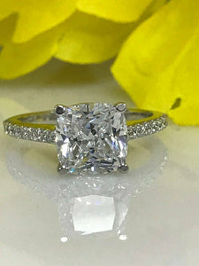 2ct Cushion Cut Diamond Accents Solitaire Engagement Ring 14k White Gold Finish