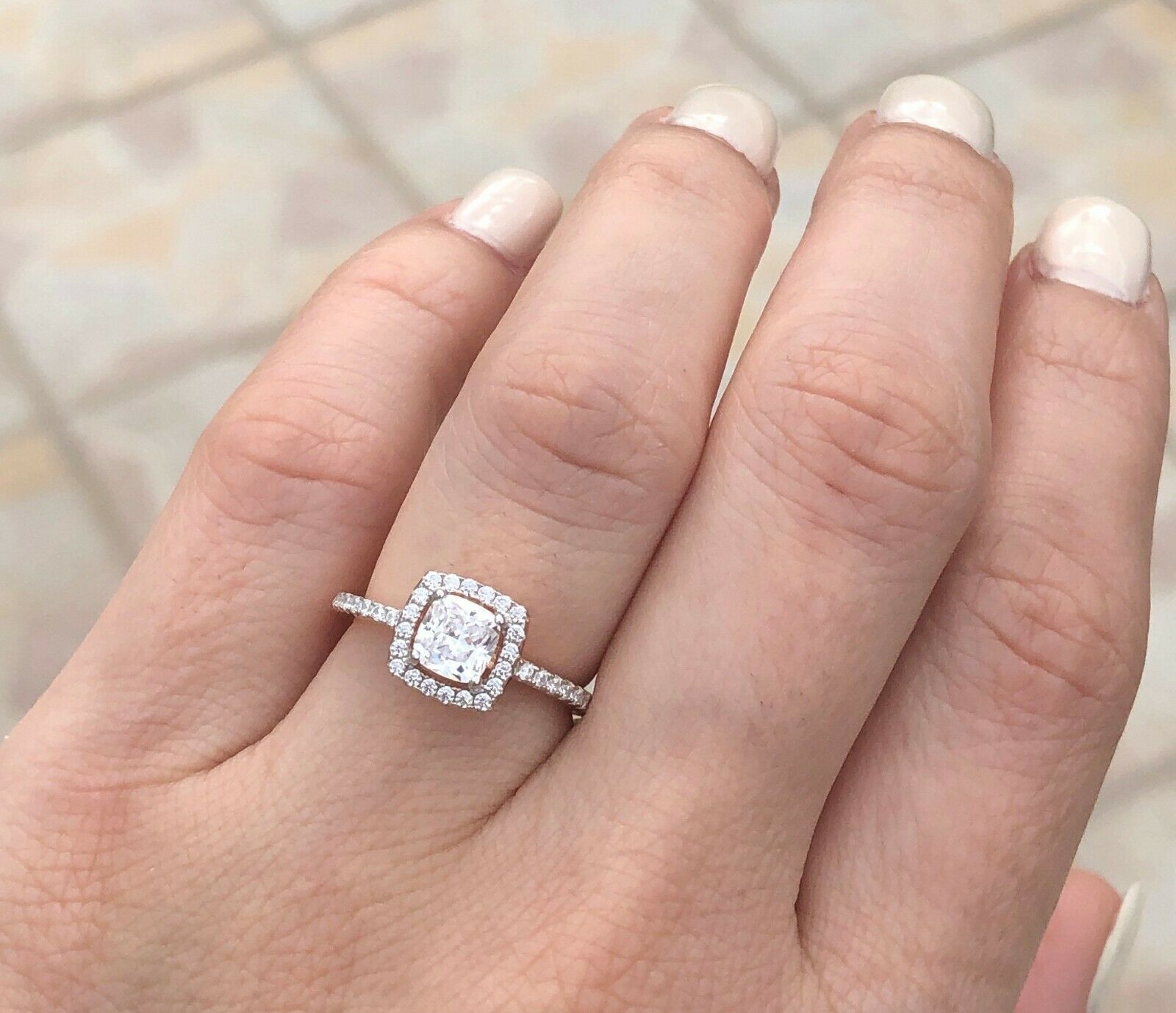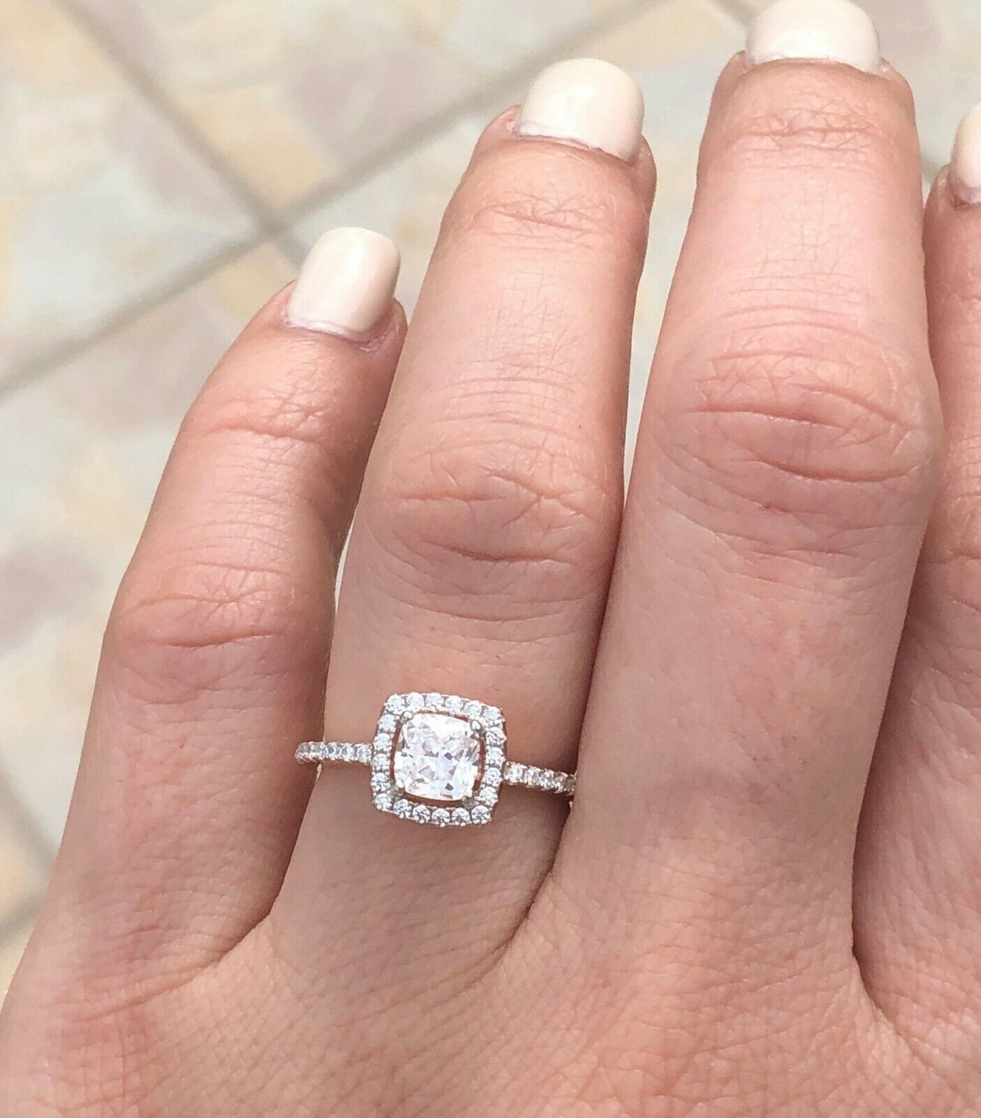 2Ct Cushion Cut Diamond Delicate Halo Engagement Ring 14K White Gold Finish