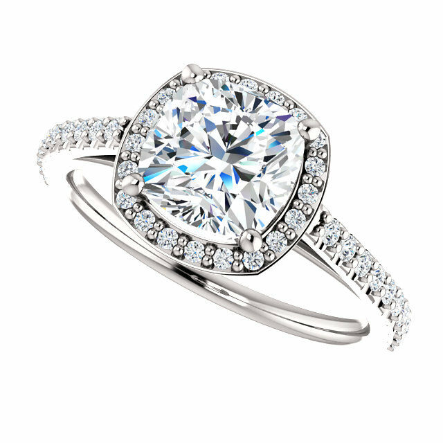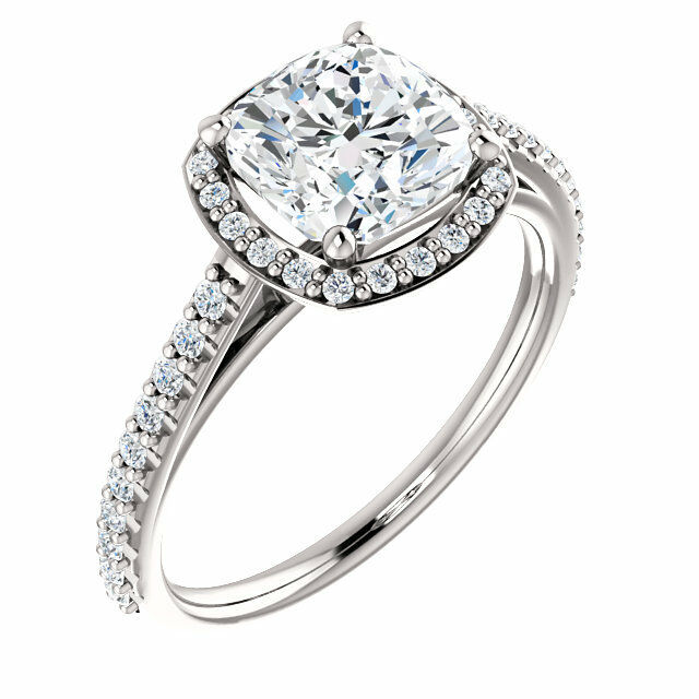 2ct Cushion Cut Diamond Halo Solitaire Engagement Ring 14k White Gold Finish New