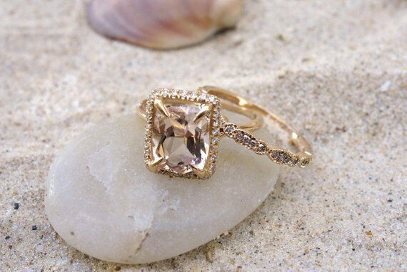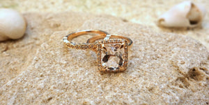2ct Cushion Cut Peach Morganite Engagement Ring 14k Rose Gold Finish Bridal Set