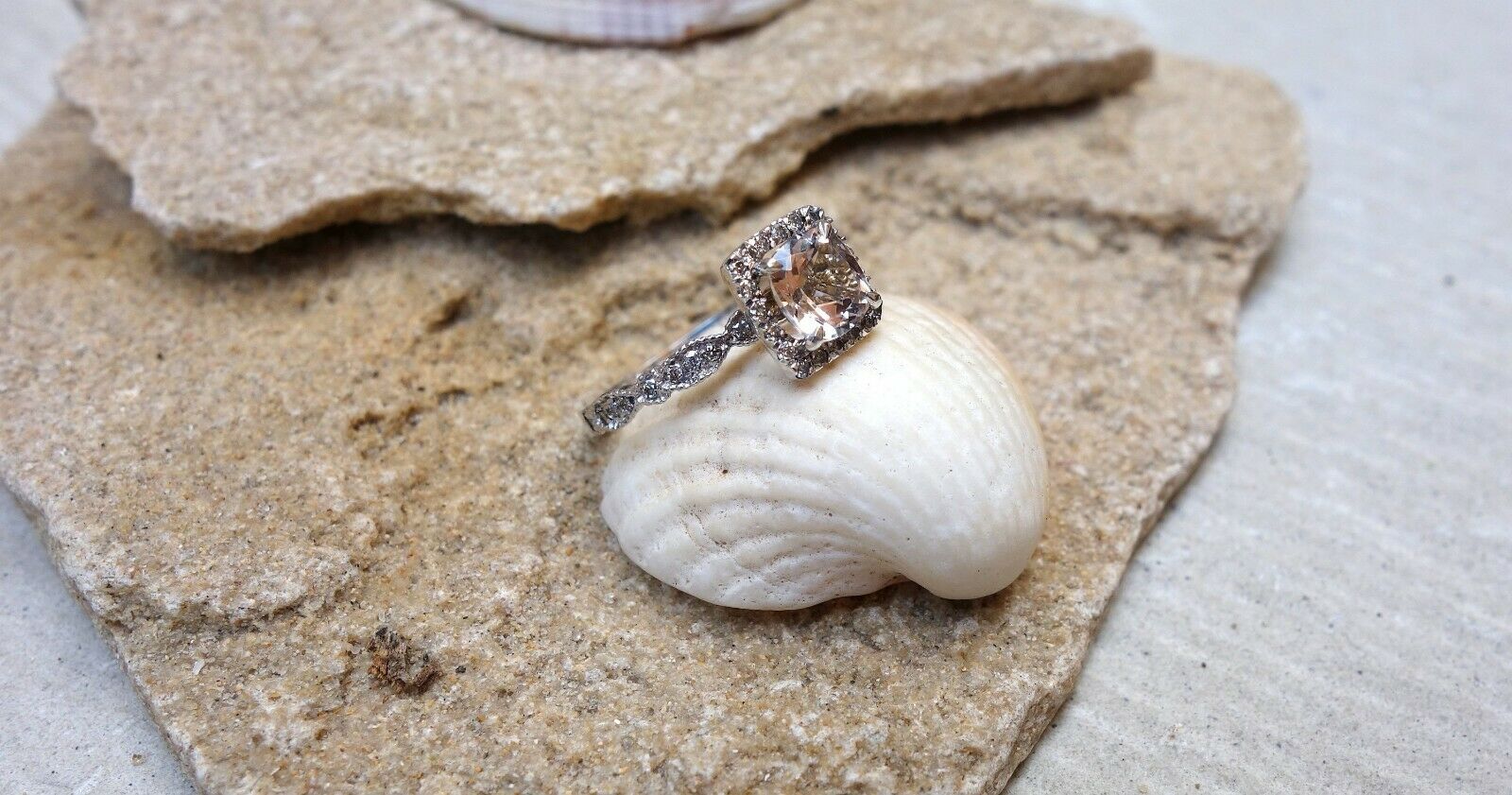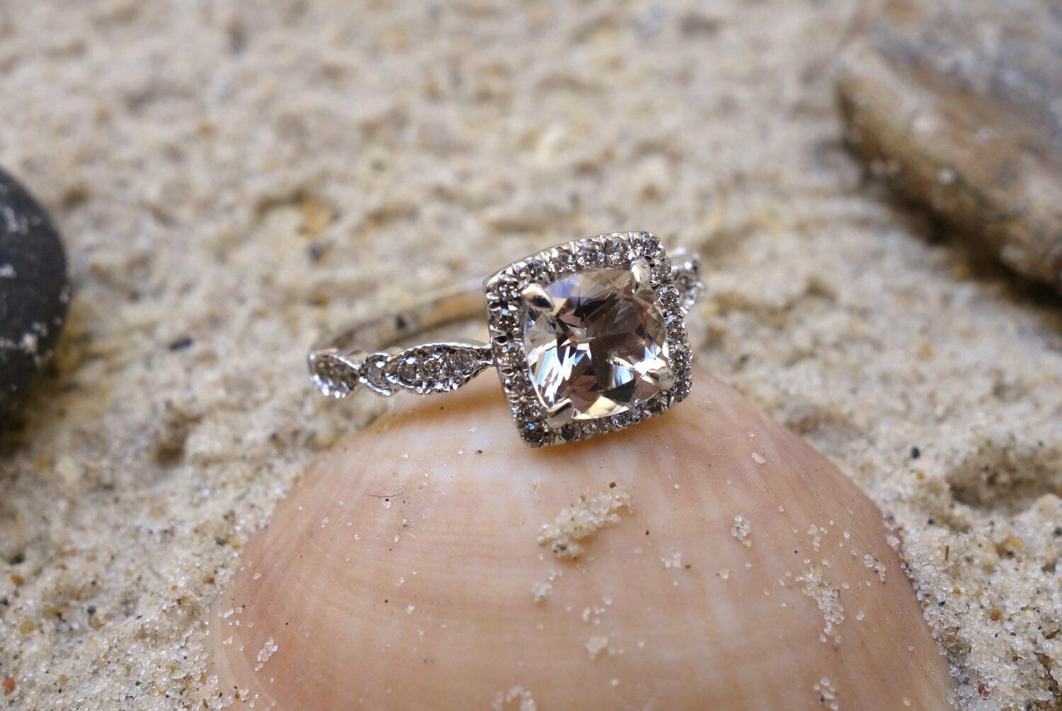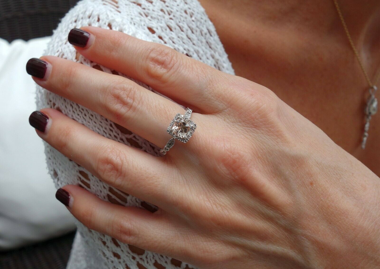 2ct Cushion Cut Peach Morganite Engagement Ring 14k White Gold Finish Halo Women