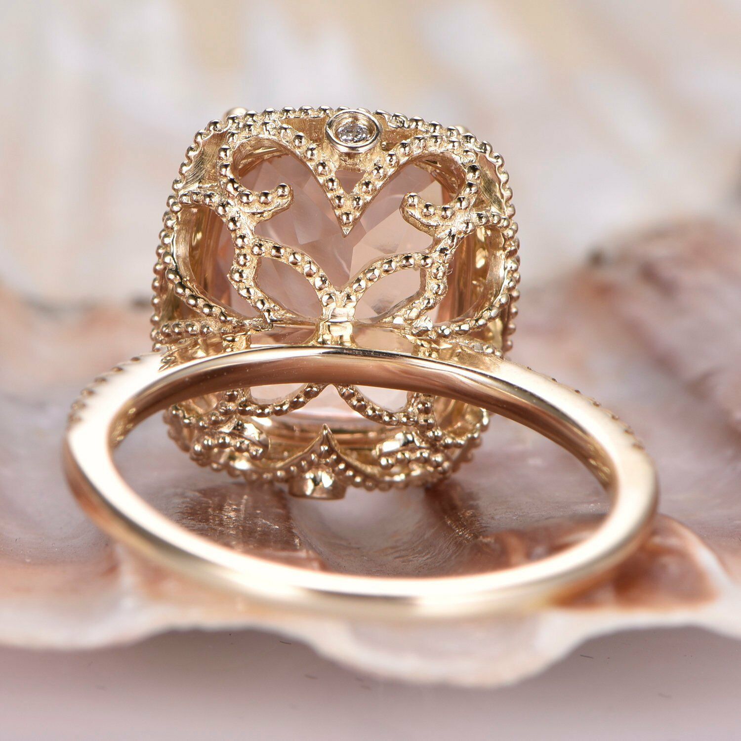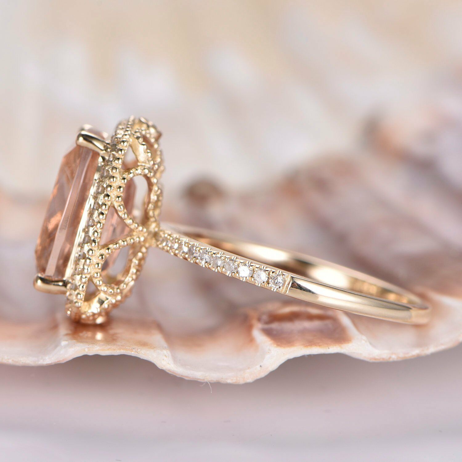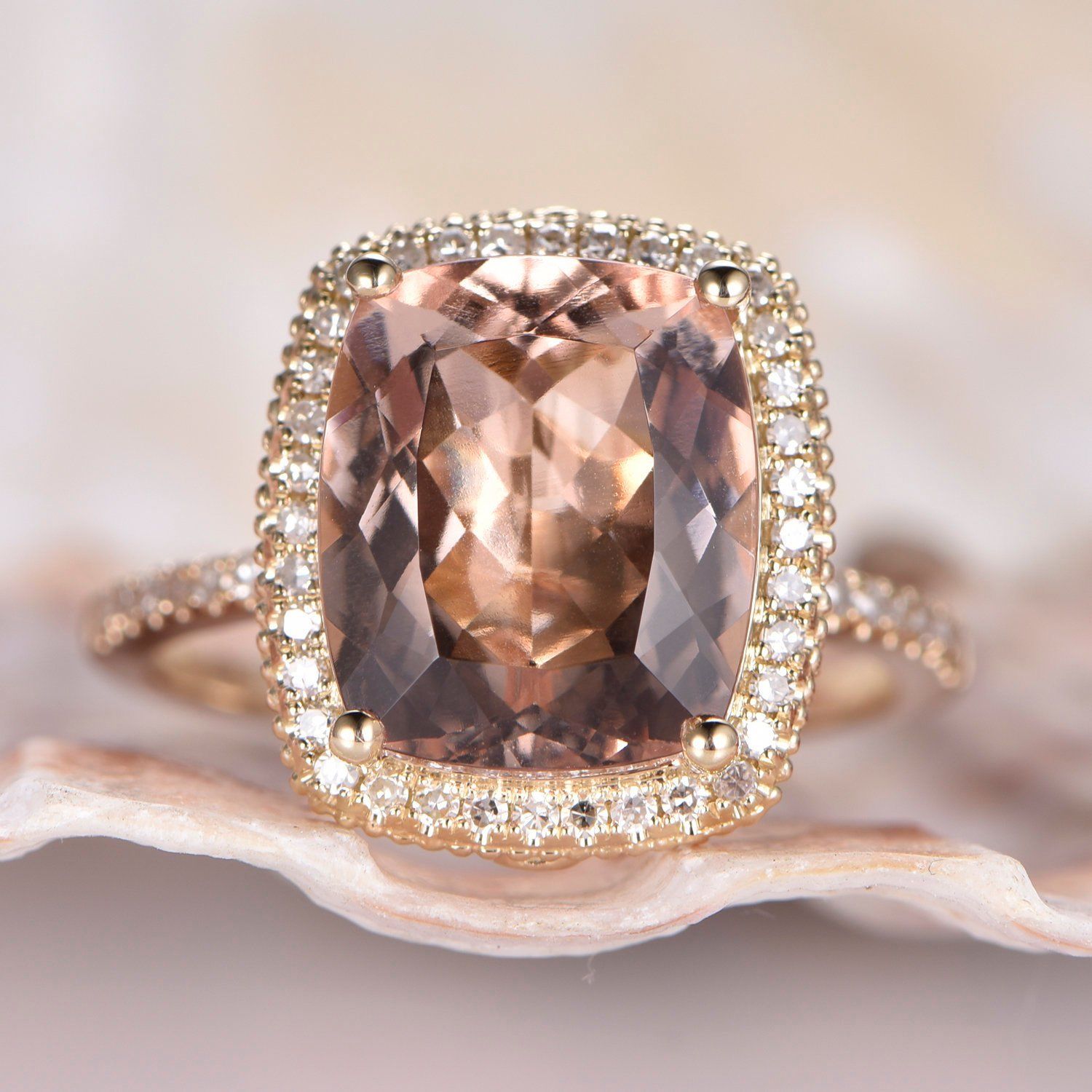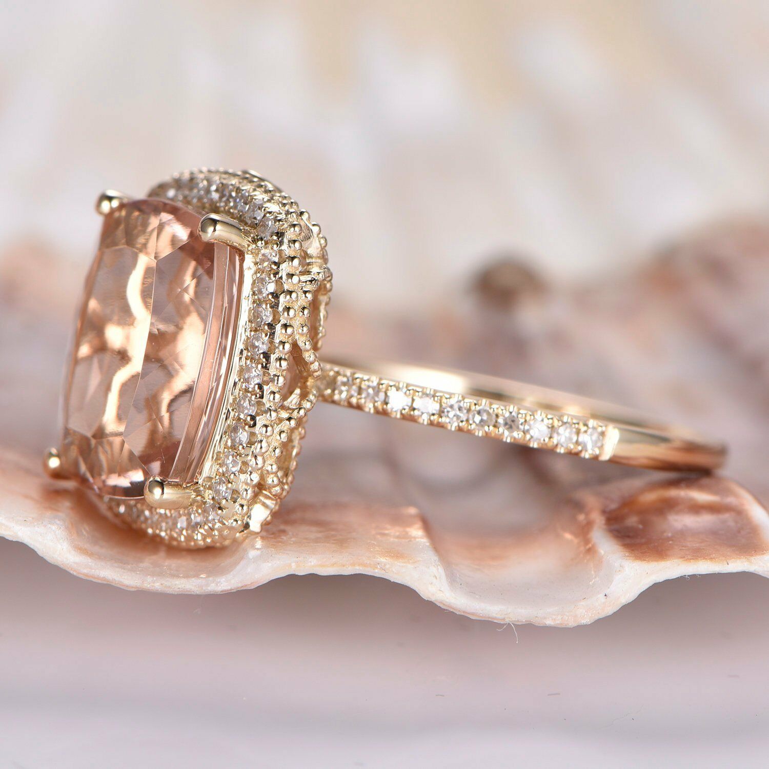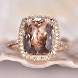 2ct Cushion Cut Peach Morganite Halo Promise Engagement Ring 14k RoseGold Finish