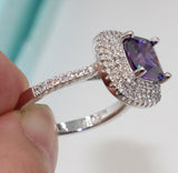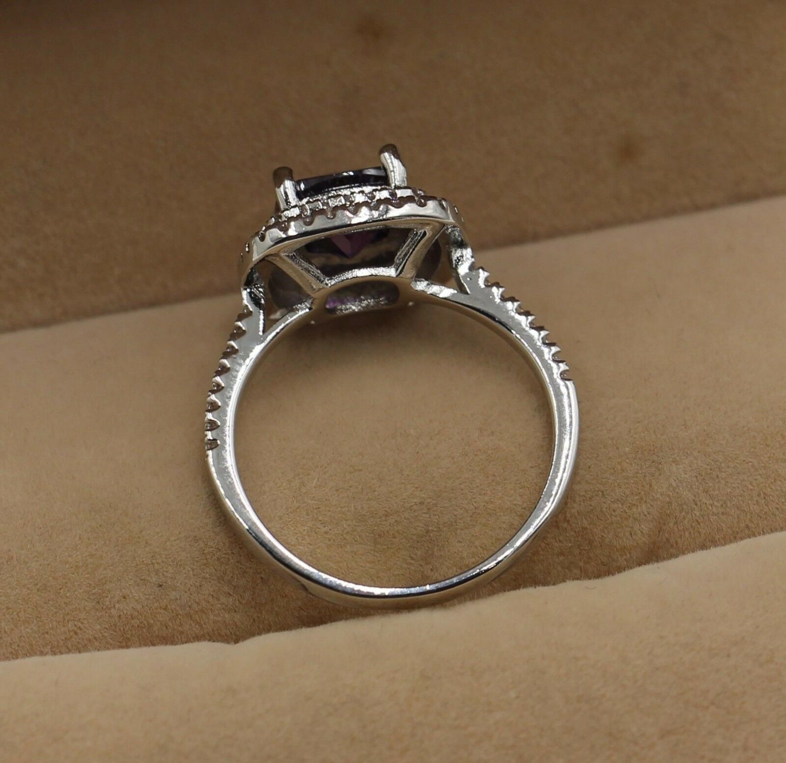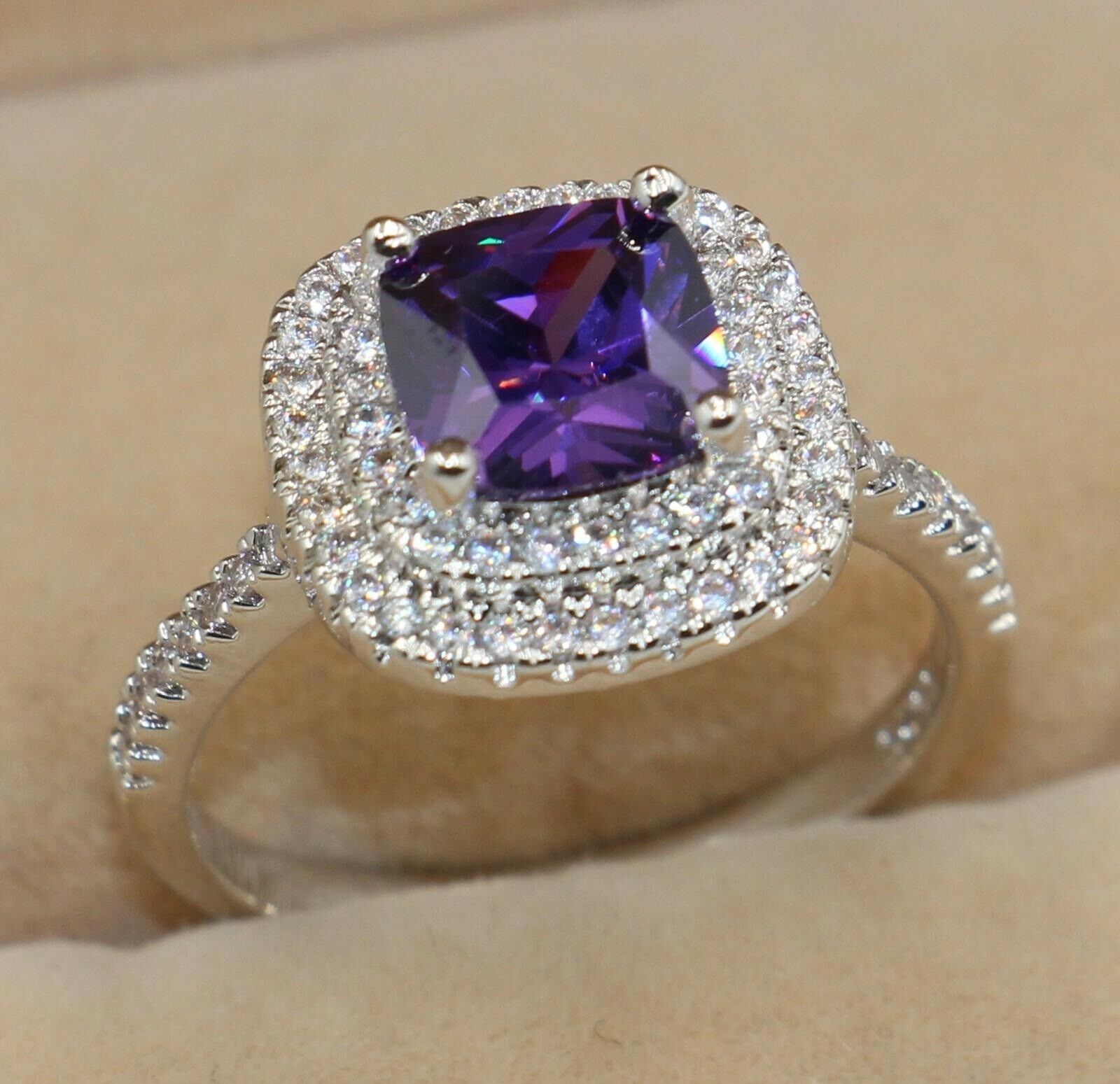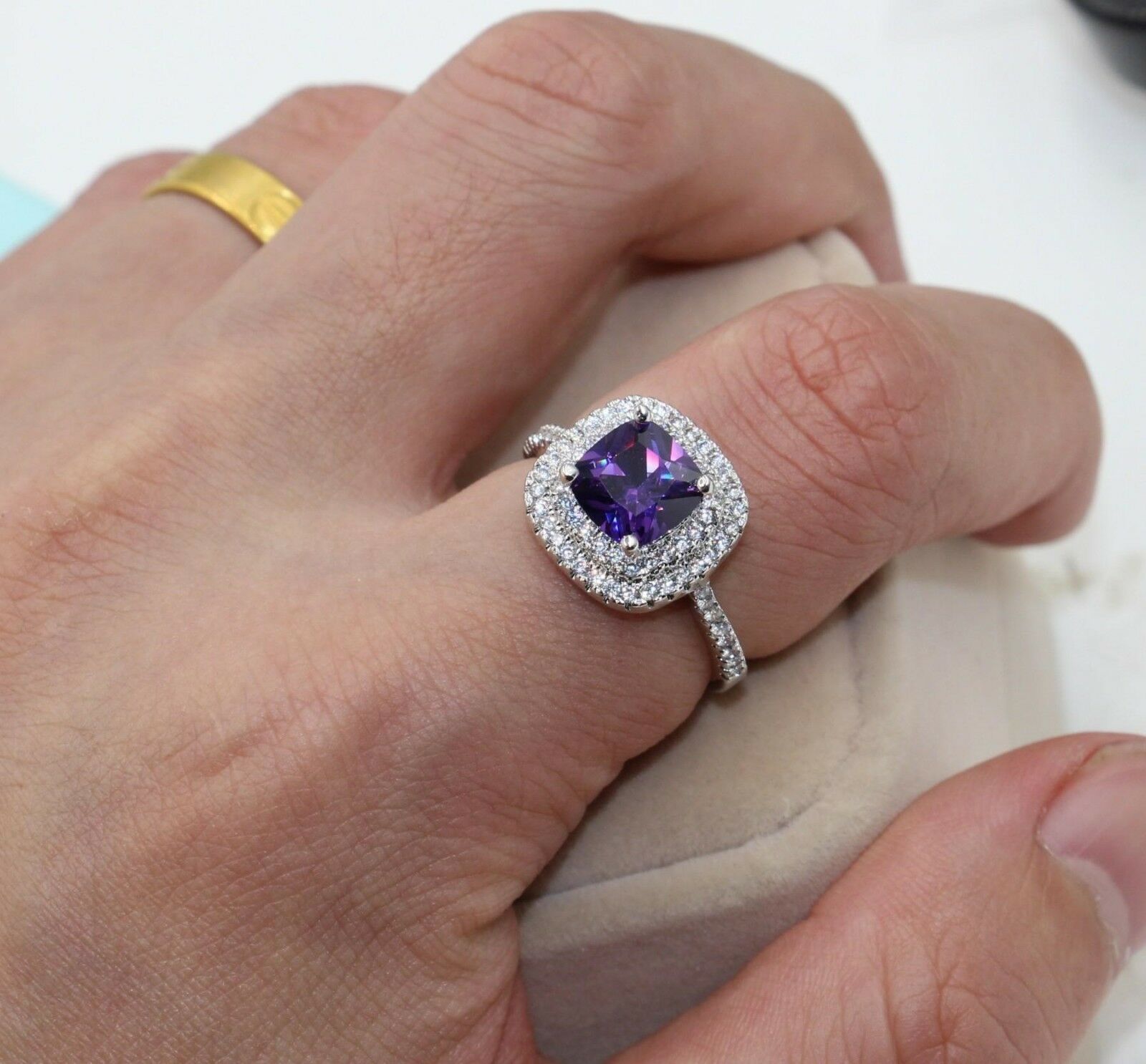 2ct Cushion Cut Purple Amethyst Engagement Ring 14k White Gold Finish Dual Halo